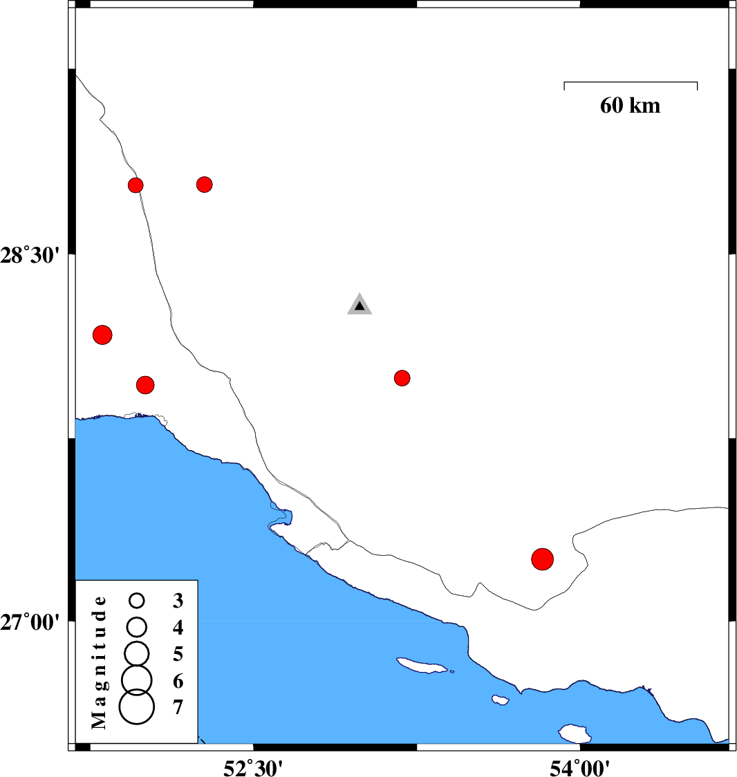 | 2025/12/23 | 22:43:04.9 | 02:13:04.9 | 28.171 | 51.806 | 12 | ML4 | Bushehr Province, 46 km North-West of Bandar-e kangan | ||