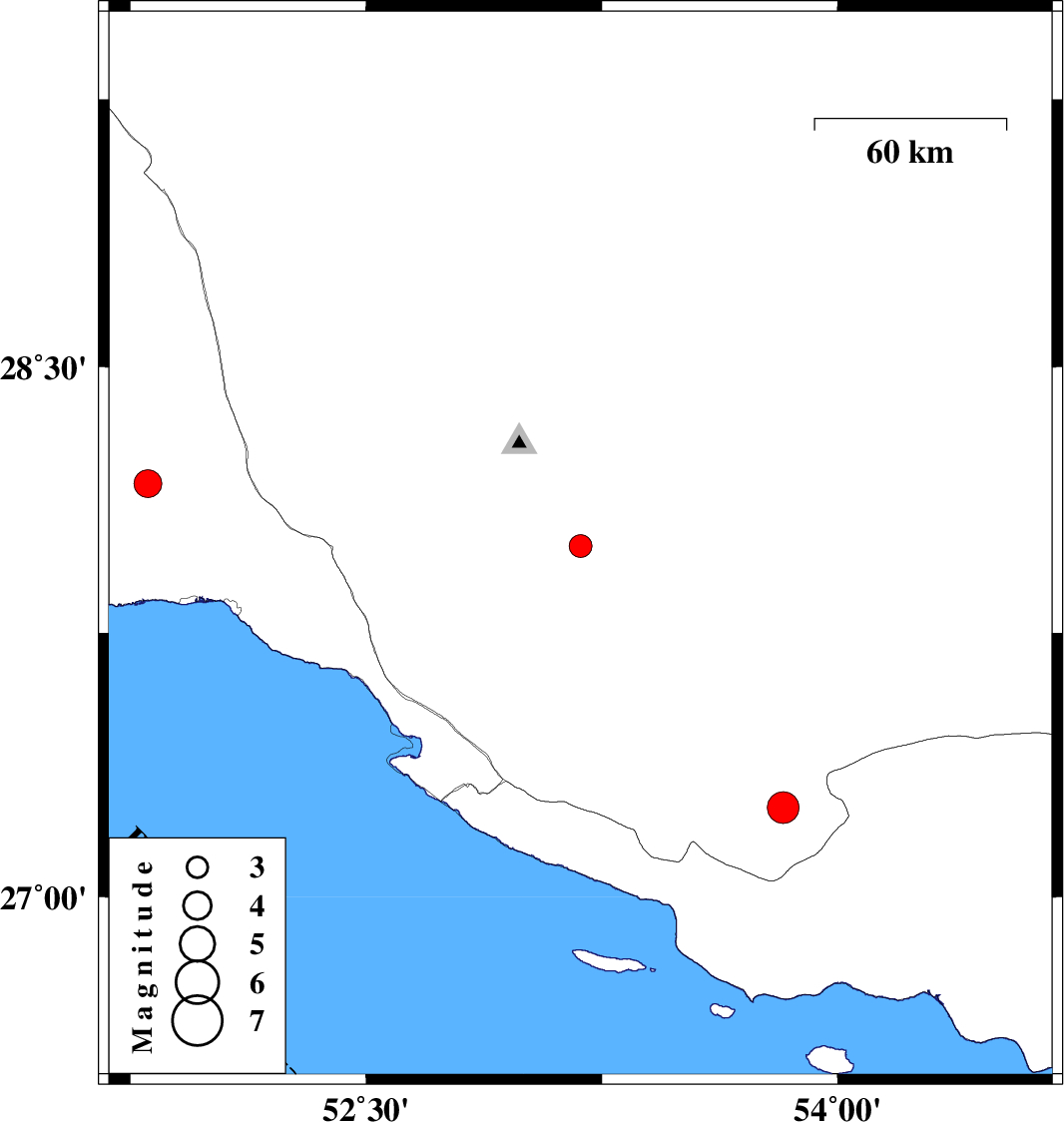 | 2025/12/23 | 22:43:04.9 | 02:13:04.9 | 28.171 | 51.806 | 12 | ML4 | Bushehr Province, 46 km North-West of Bandar-e kangan | ||