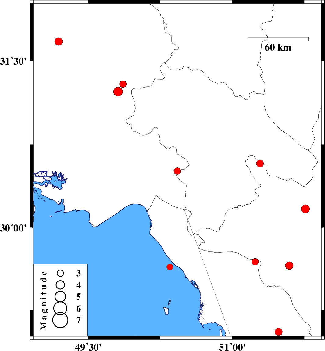 | 2025/12/21 | 04:30:27.8 | 08:00:27.8 | 29.642 | 50.349 | 8 | ML3 | Persian Gulf, 18 km -West of Bandar-e genaveh | ||
