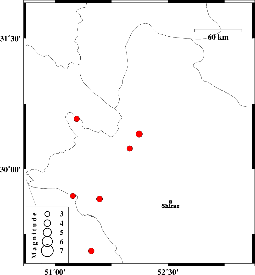 | 2025/12/24 | 10:08:52.3 | 13:38:52.3 | 29.654 | 51.592 | 12 | ML3.7 | Fars Province, 7 km of Kazerun | ||