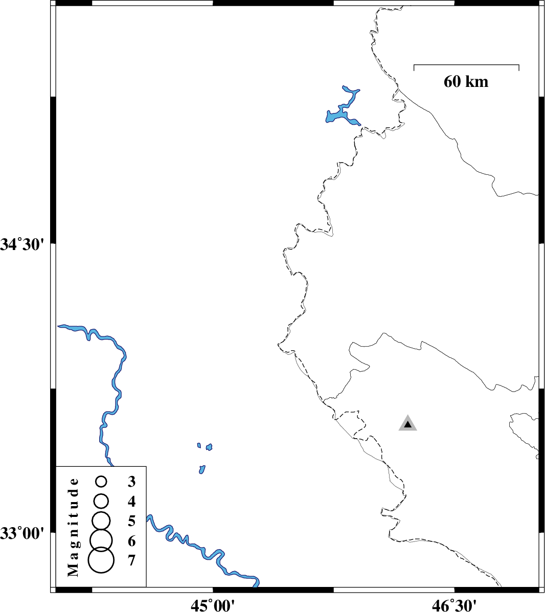 | 2025/12/27 | 03:03:23.8 | 06:33:23.8 | 34.213 | 45.524 | 12 | ML3.4 | Iraq, 34 km South of Qasr-E-Shirin |