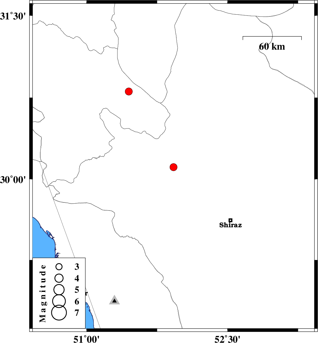 | 2026/01/09 | 08:12:44.9 | 11:42:44.9 | 30.11 | 51.925 | 12 | ML3.5 | Fars Province, 18 km South of Ardakan |