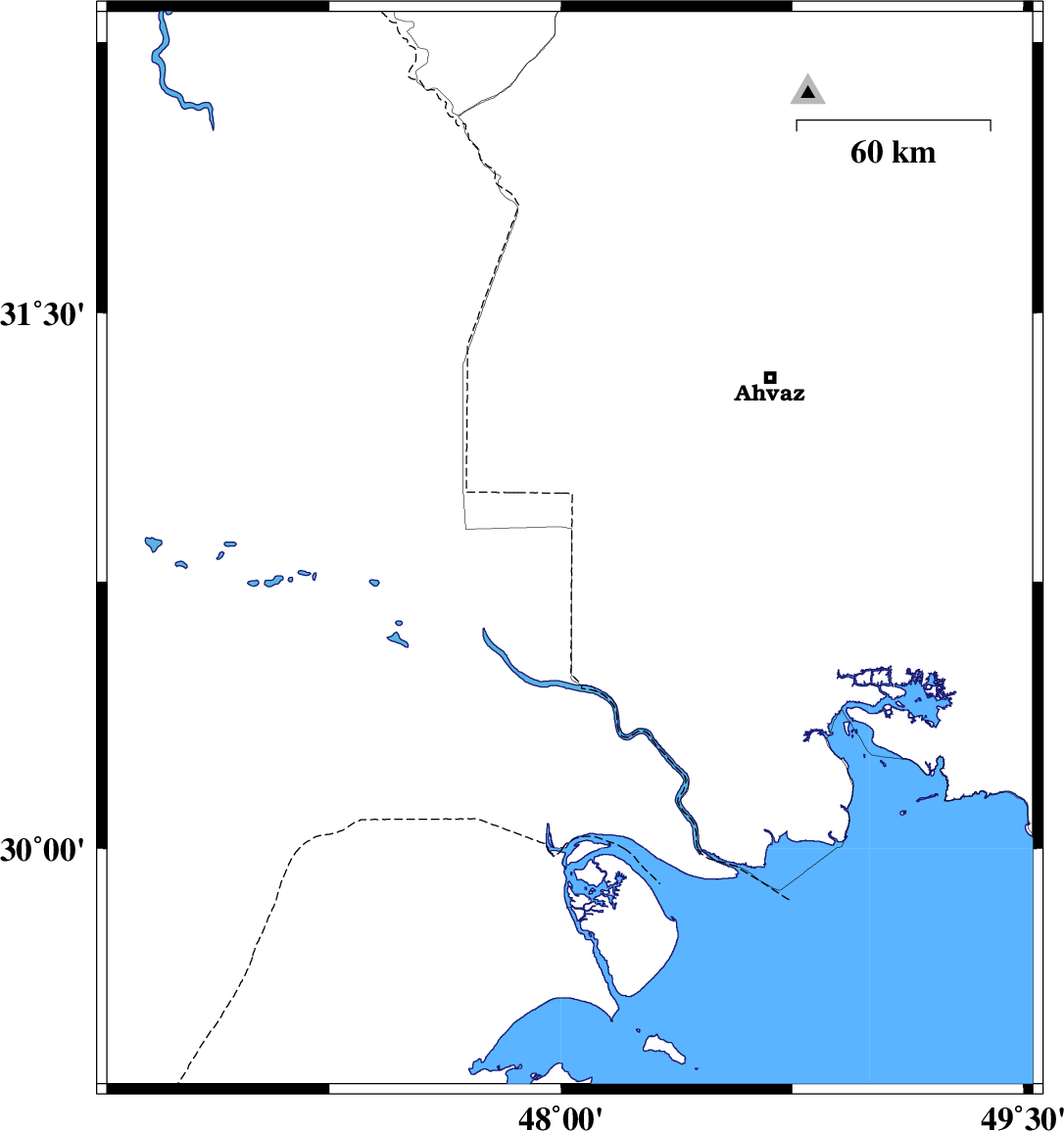 Map Region : lat:29.335-32.335  lon:46.529-49.529