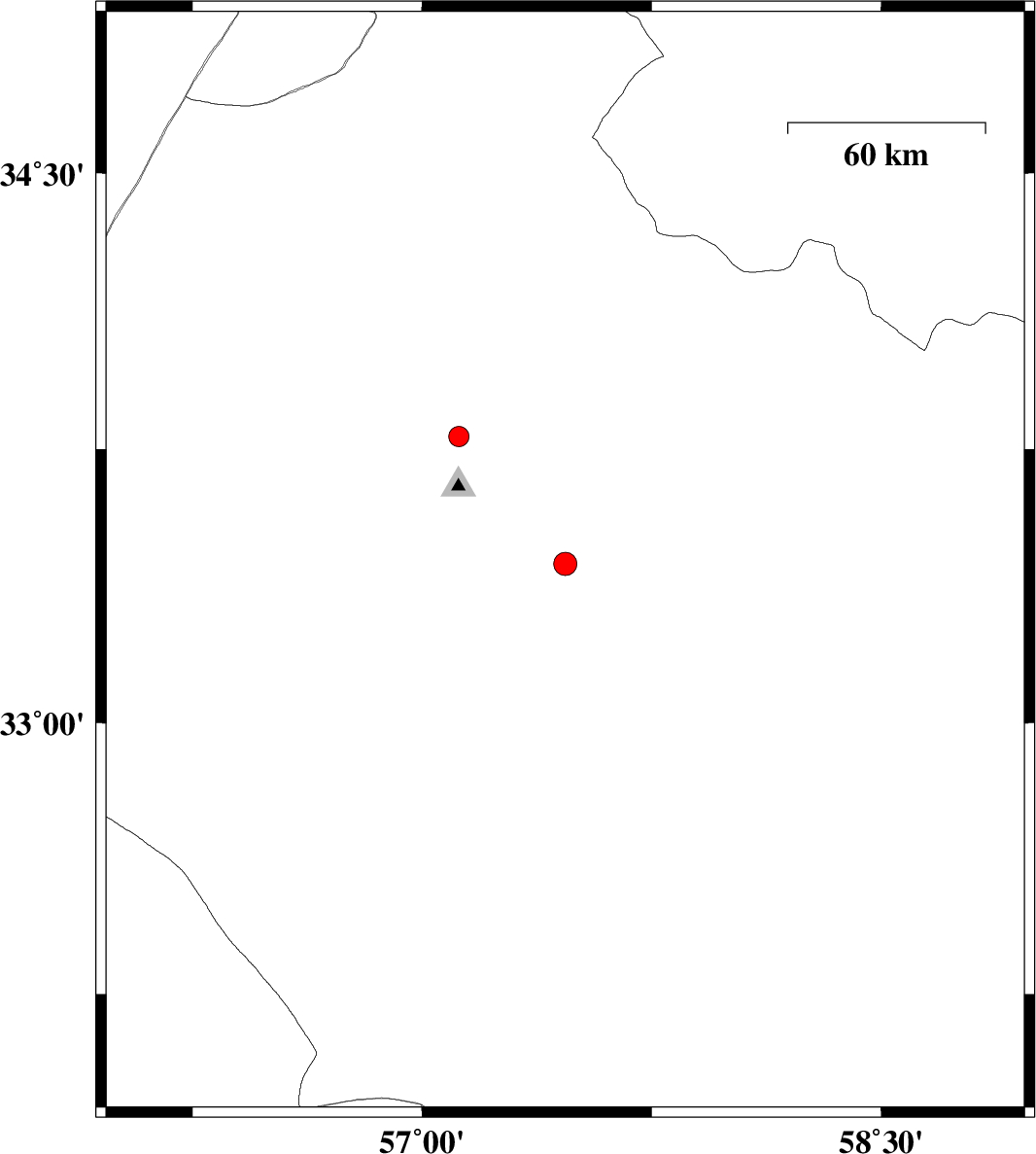 | 2026/01/15 | 22:51:56.6 | 02:21:56.6 | 33.437 | 57.468 | 12 | ML3.4 | Yazd Province, 53 km South-East of Tabas | ||