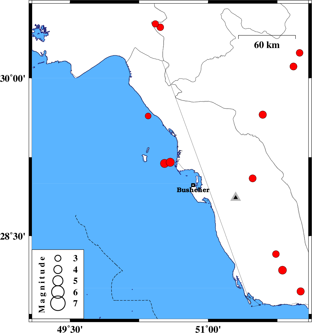 | 2026/01/14 | 09:25:04.0 | 12:55:04.0 | 29.192 | 50.527 | 7 | ML4.1 | Persian Gulf, 43 km South of Bandar-e genaveh | ||