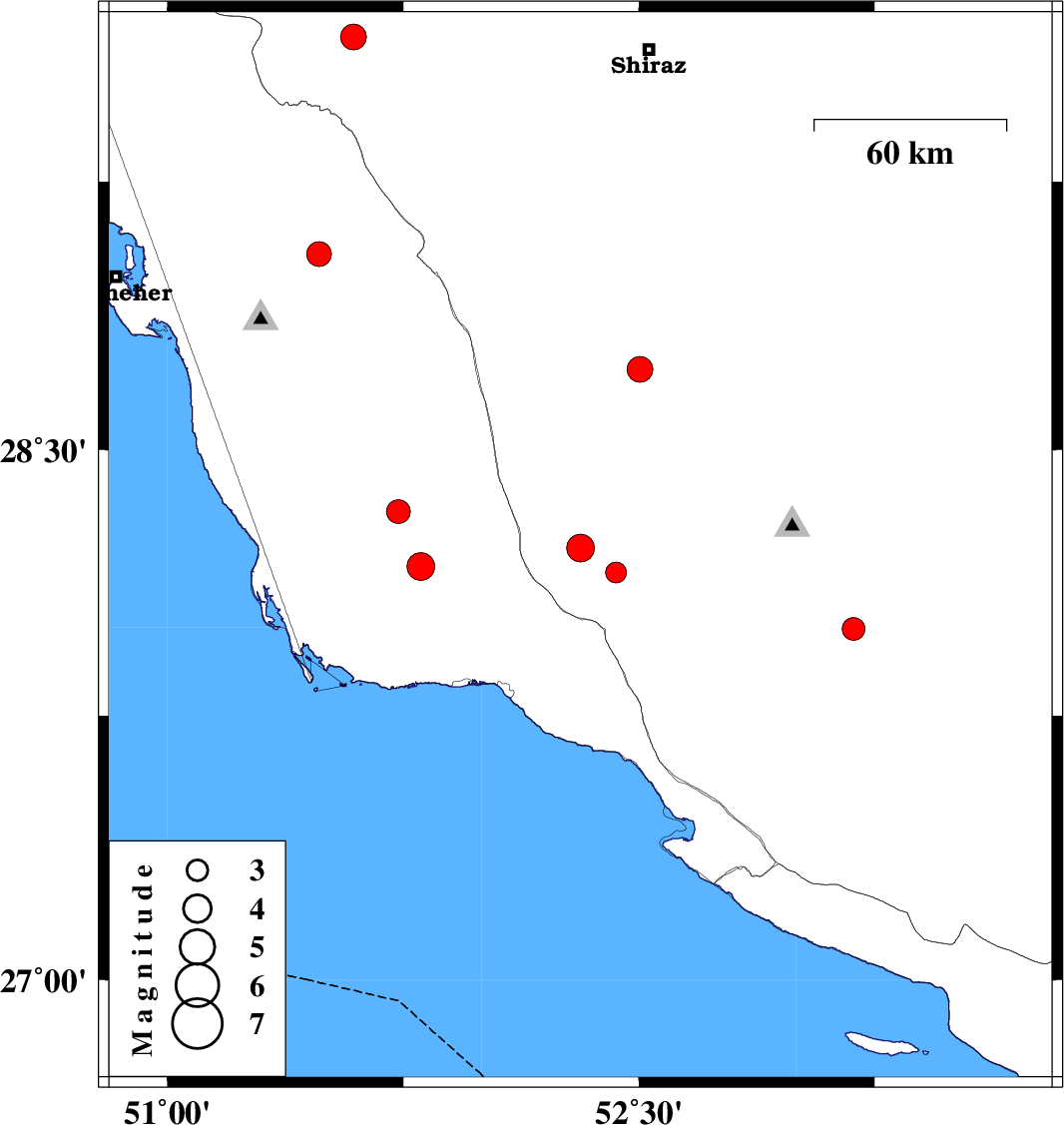 | 2025/12/23 | 22:43:04.9 | 02:13:04.9 | 28.171 | 51.806 | 12 | ML4 | Bushehr Province, 46 km North-West of Bandar-e kangan | ||