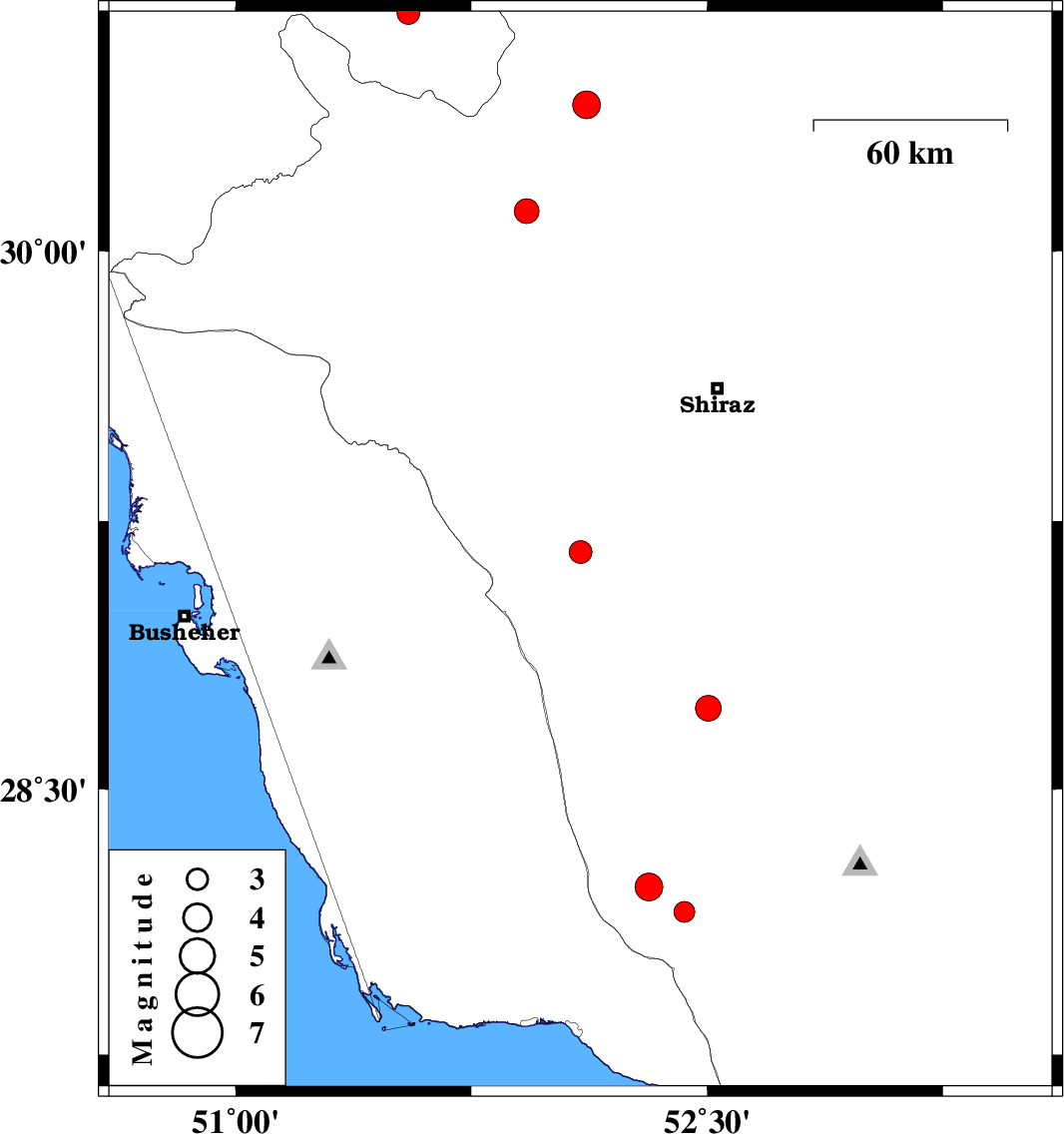 | 2026/01/09 | 08:12:44.9 | 11:42:44.9 | 30.11 | 51.925 | 12 | ML3.5 | Fars Province, 18 km South of Ardakan | ||