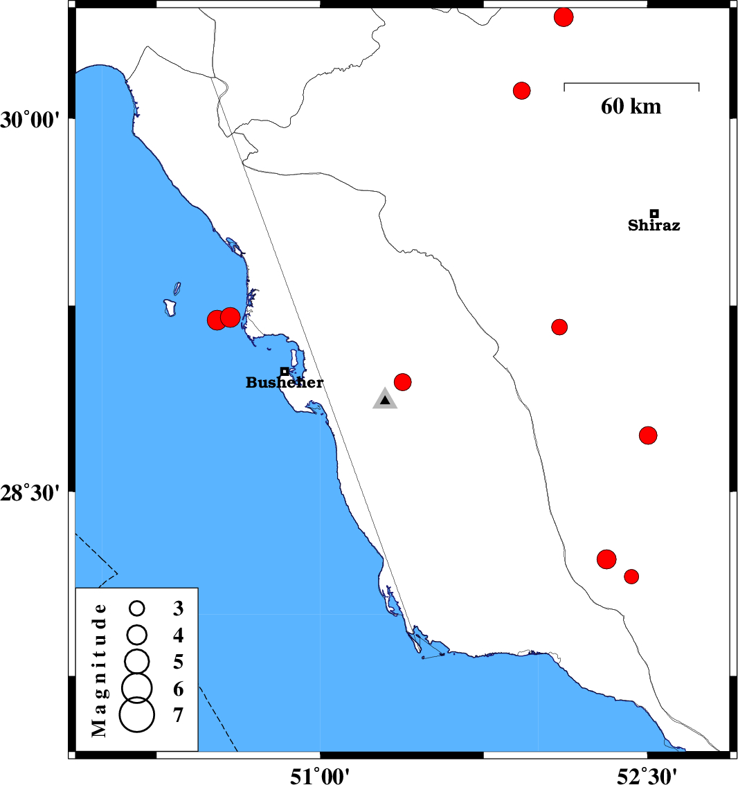 | 2026/01/14 | 09:26:41.9 | 12:56:41.9 | 29.203 | 50.588 | 12 | ML4.1 | Persian Gulf, 42 km South of Bandar-e genaveh | ||
