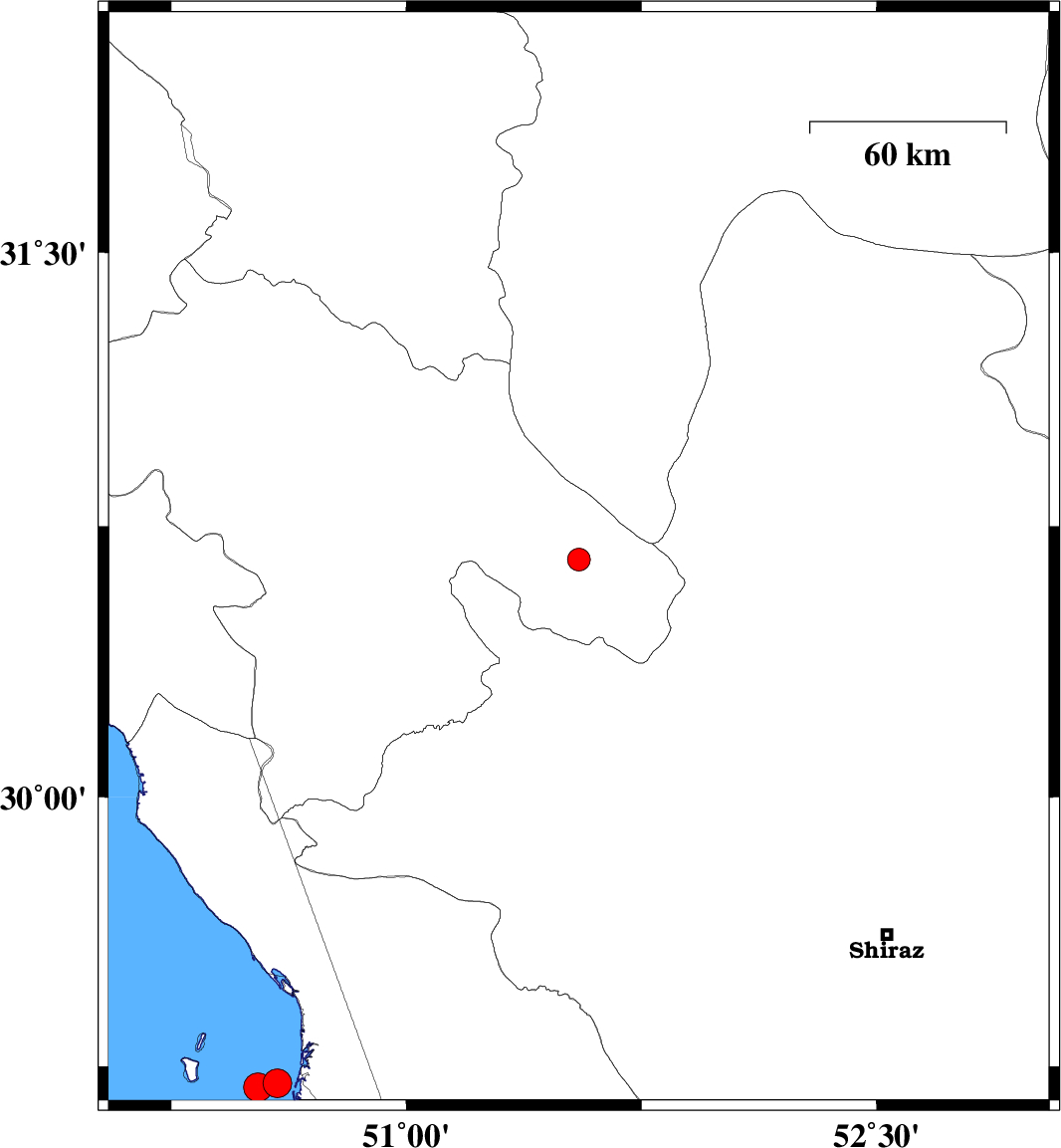 | 2026/01/14 | 09:26:41.9 | 12:56:41.9 | 29.203 | 50.588 | 12 | ML4.1 | Persian Gulf, 42 km South of Bandar-e genaveh | ||