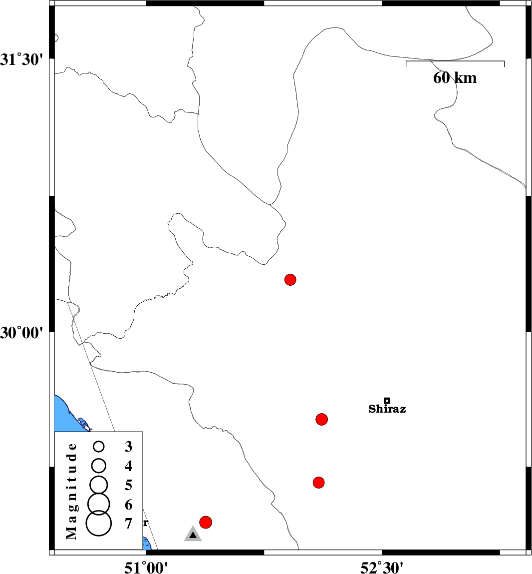 | 2026/01/31 | 08:00:57.9 | 11:30:57.9 | 29.514 | 52.117 | 12 | ML3.4 | Fars Province, 42 km South-West of Shiraz | ||