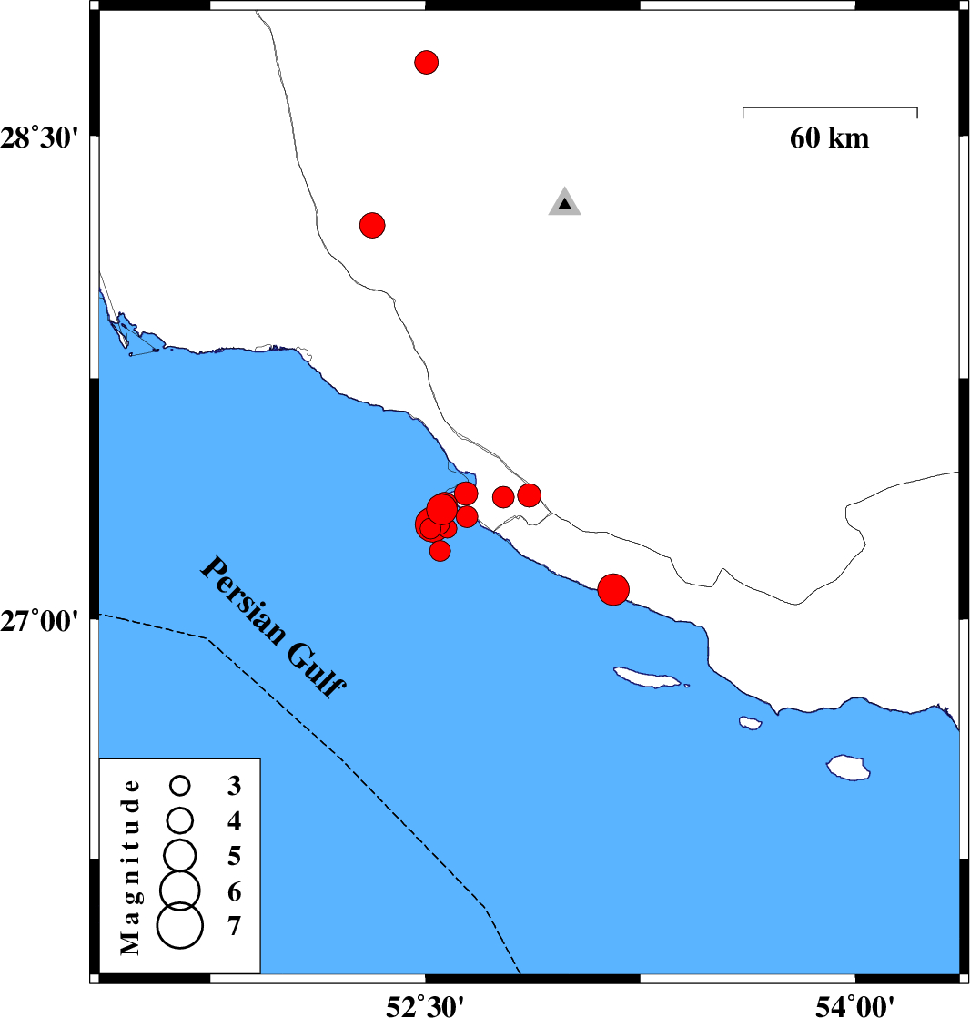 | 2026/02/04 | 06:22:39.3 | 09:52:39.3 | 27.387 | 52.862 | 12 | ML3.6 | Bushehr Province, 18 km South of Mehr | ||