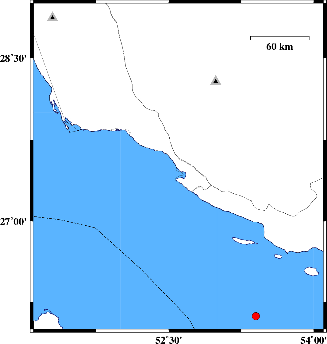 | 2026/02/08 | 12:40:17.6 | 16:10:17.6 | 27.355 | 52.447 | 12 | ML3.9 | Persian Gulf, 55 km South-East of Jam | ||