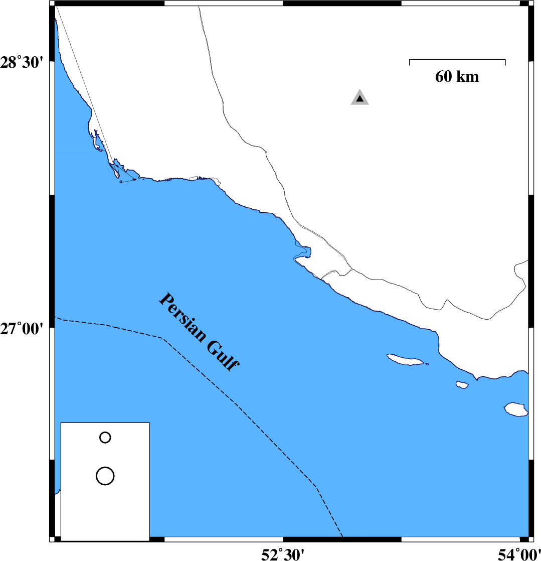 | 2026/02/01 | 12:02:22.5 | 15:32:22.5 | 27.283 | 52.577 | 16 | ML3 | Persian Gulf, 42 km South-West of Mehr | ||