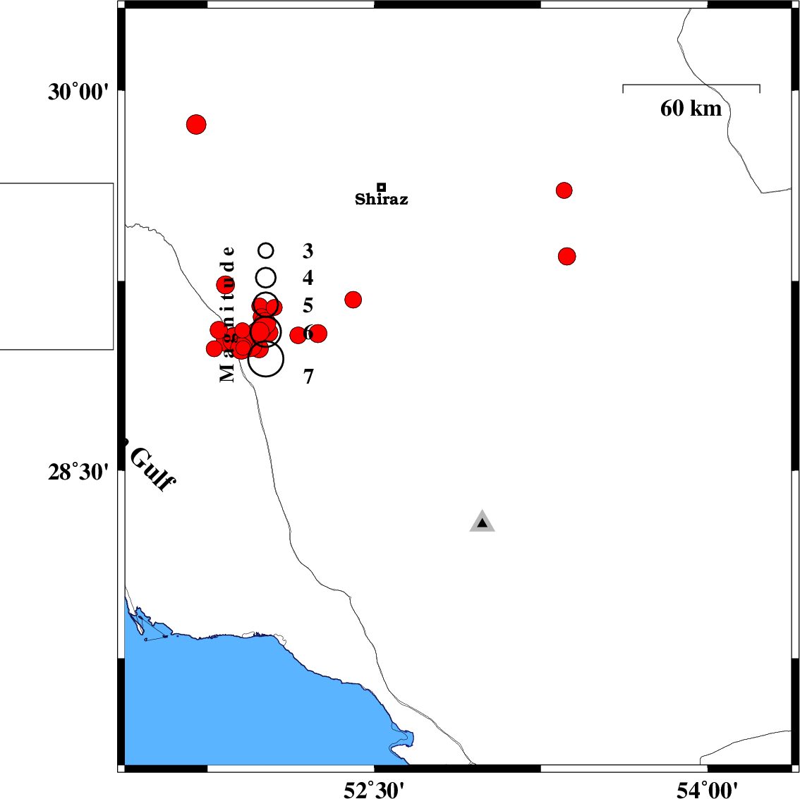 | 2026/02/04 | 14:52:38.2 | 18:22:38.2 | 27.328 | 52.597 | 12 | ML3.8 | Persian Gulf, 38 km South-West of Mehr | ||