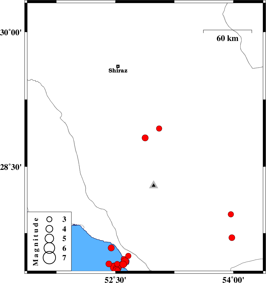 | 2026/02/13 | 20:43:14.2 | 00:13:14.2 | 27.33 | 52.525 | 12 | ML3 | Persian Gulf, 43 km South-West of Mehr | ||