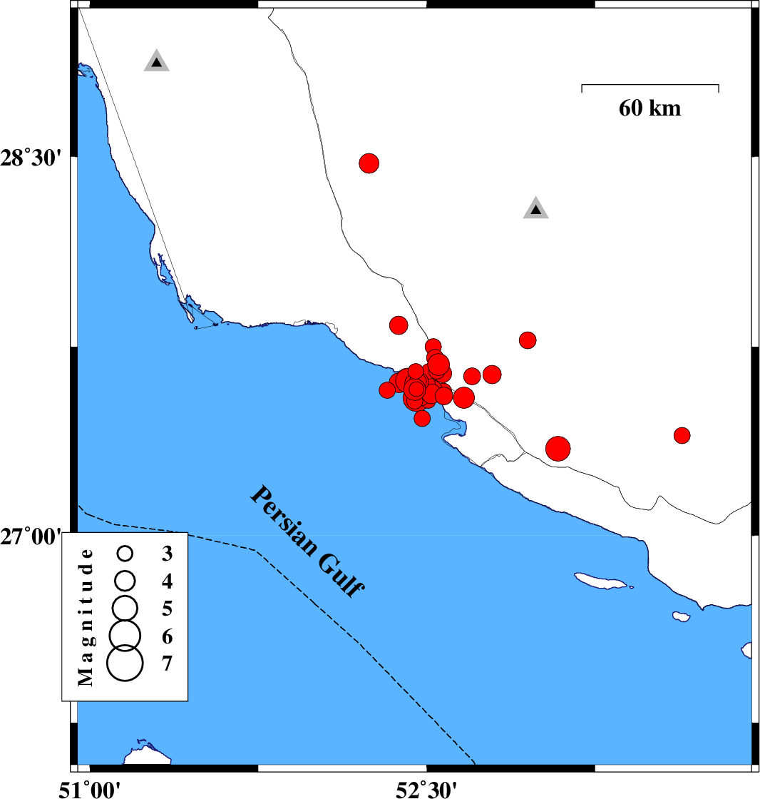 | 2026/02/04 | 06:22:39.3 | 09:52:39.3 | 27.387 | 52.862 | 12 | ML3.6 | Bushehr Province, 18 km South of Mehr | ||