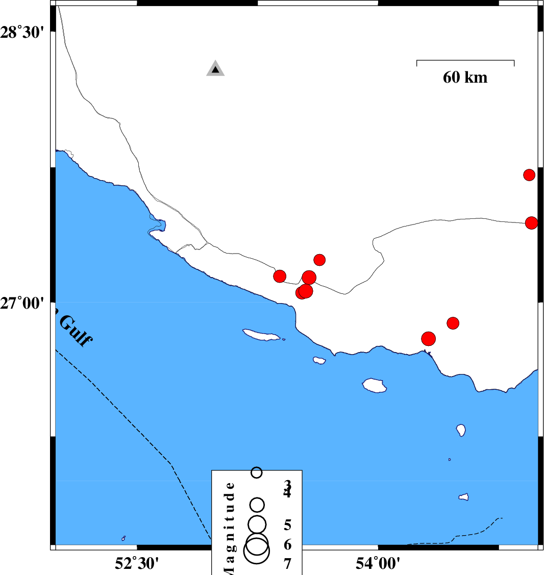 | 2026/02/19 | 03:43:06.5 | 07:13:06.5 | 27.32 | 52.578 | 12 | ML4 | Persian Gulf, 40 km South-West of Mehr | ||