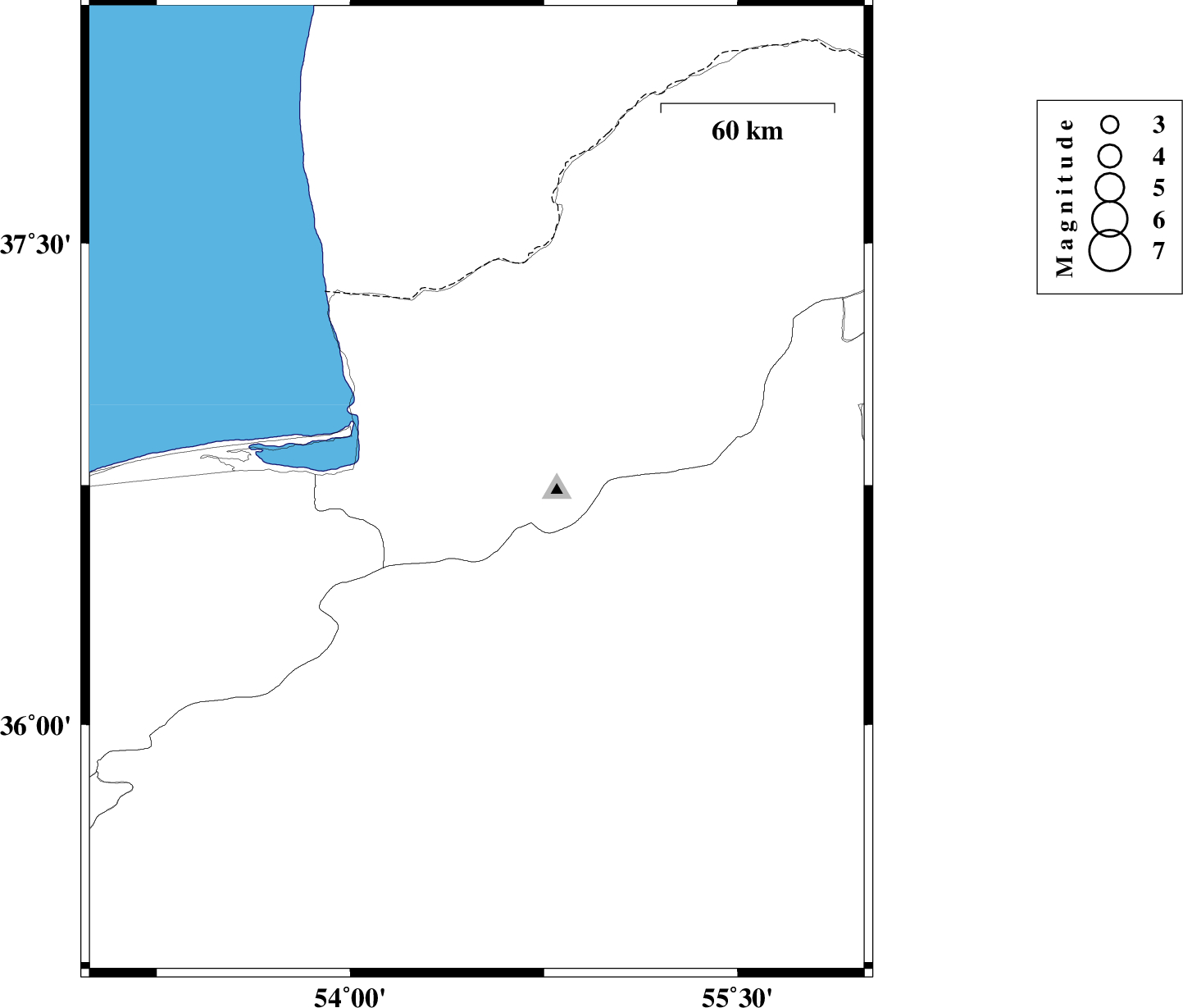 2006/11/02 00:58:01.5 04:28:01.5 36.7354.4916 ML3.8 12 km South of Gorgan, Golestan Province