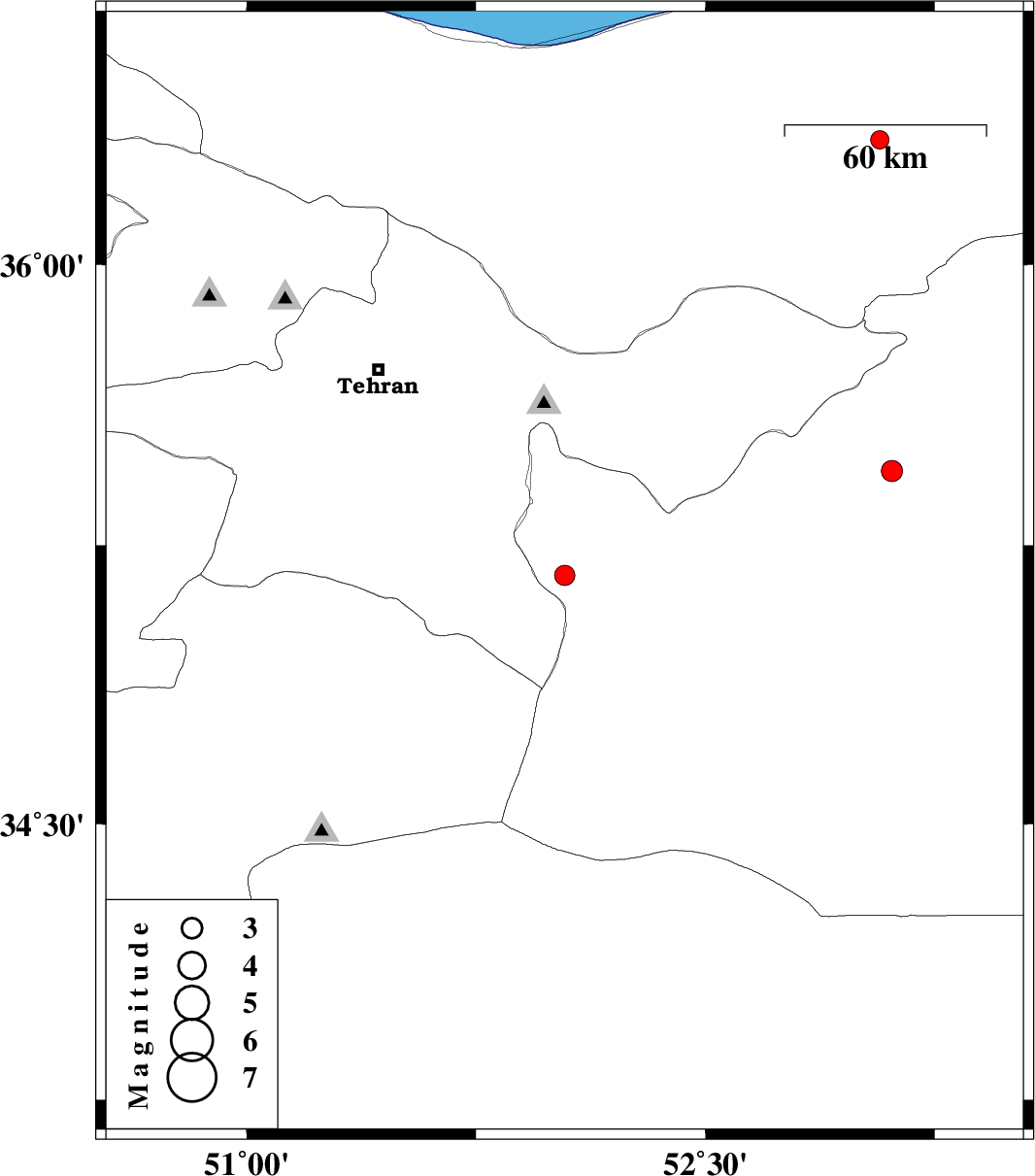 | 2006/11/18 | 14:33:19.5 | 18:03:19.5 | 35.17 | 52.04 | 15 | ML3 | 27 km West of Garmsar, Semnan Province | ||