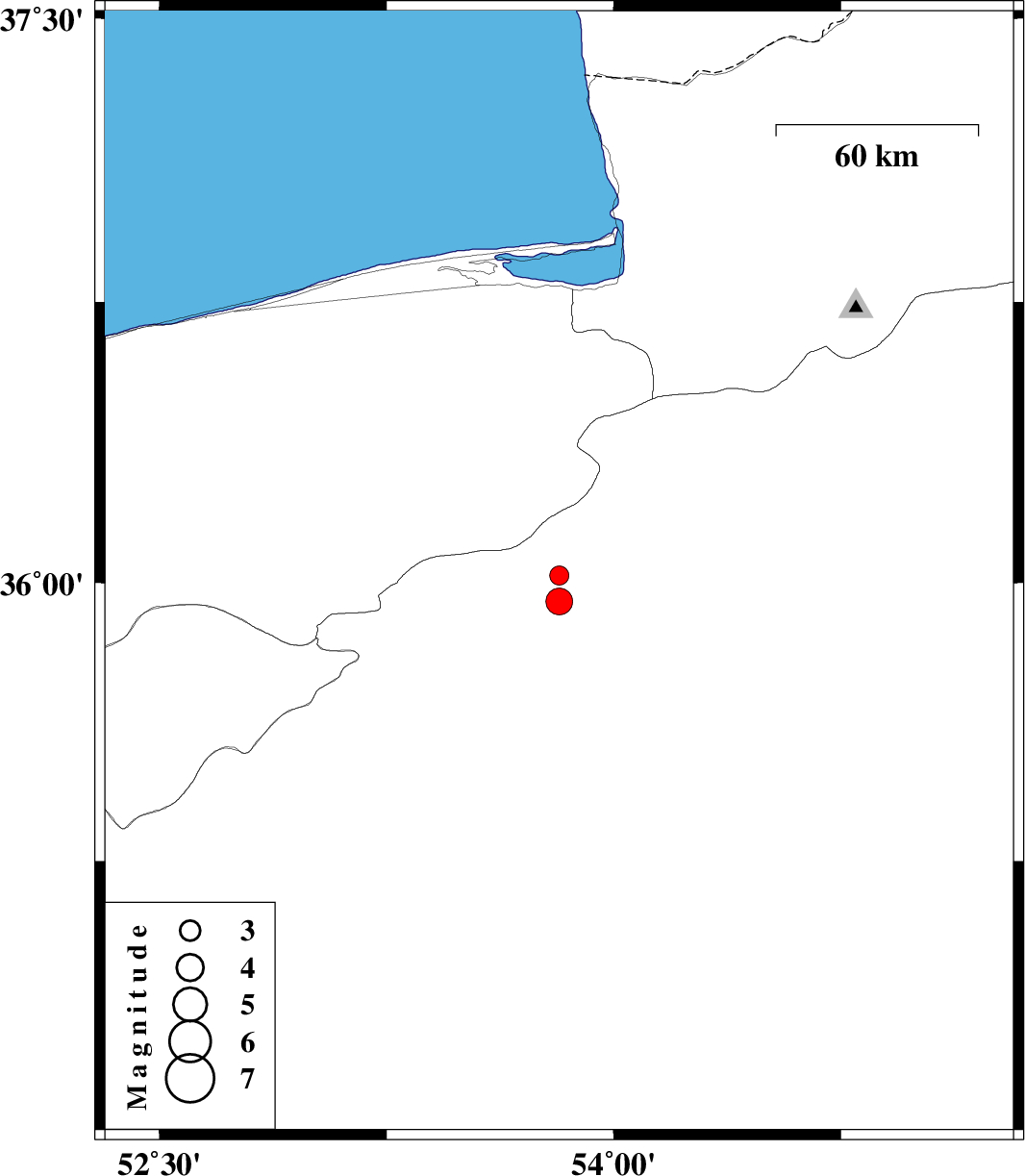 | 2006/12/20 | 05:00:38.4 | 08:30:38.4 | 35.95 | 53.82 | 15 | ML3.9 | 52 km South-West of Damghan, Semnan Province |