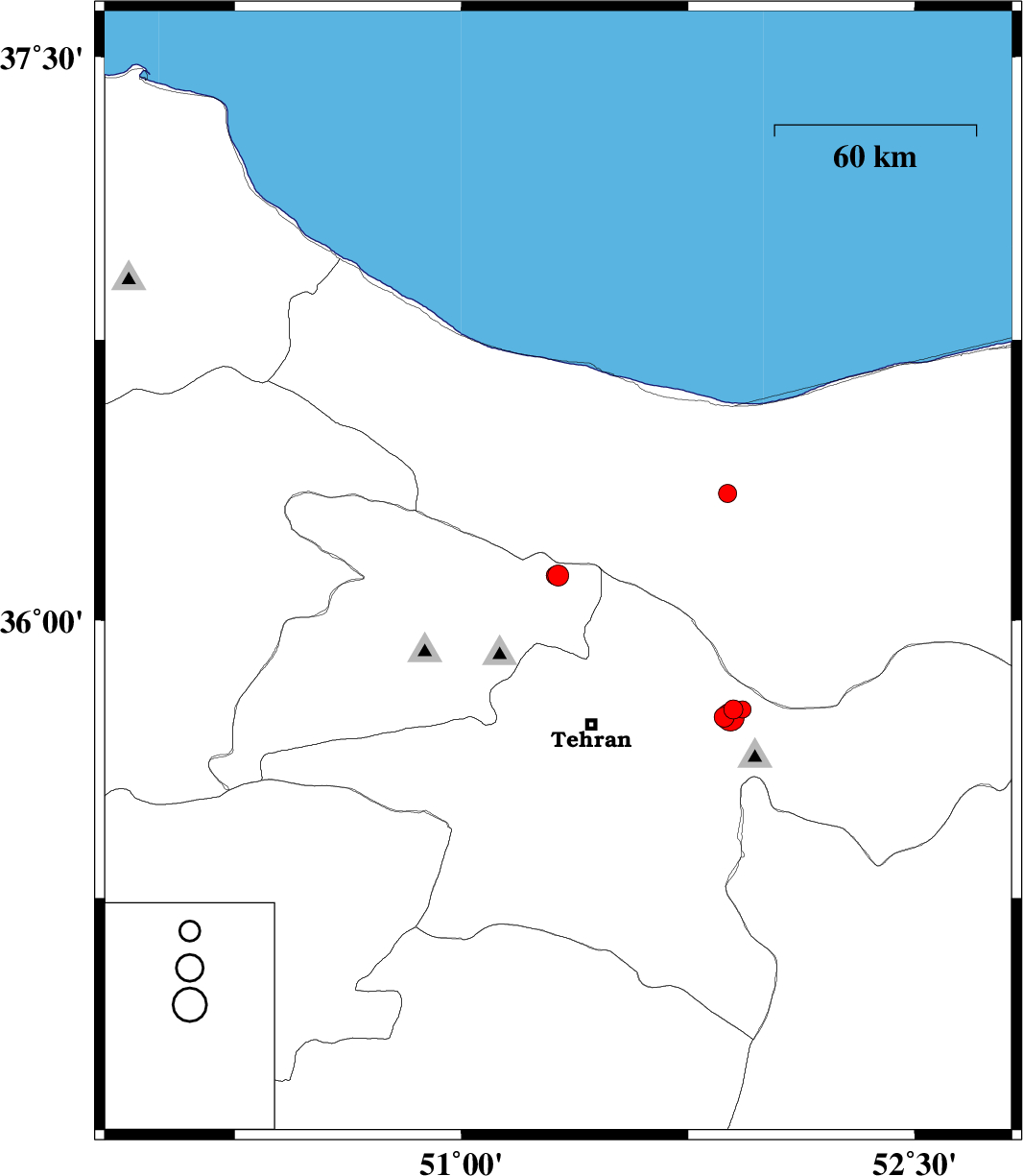 2006/12/20 04:39:20.4 08:09:20.4 35.7451.8914 ML4.1 17 km West of Damavand, Tehran Province