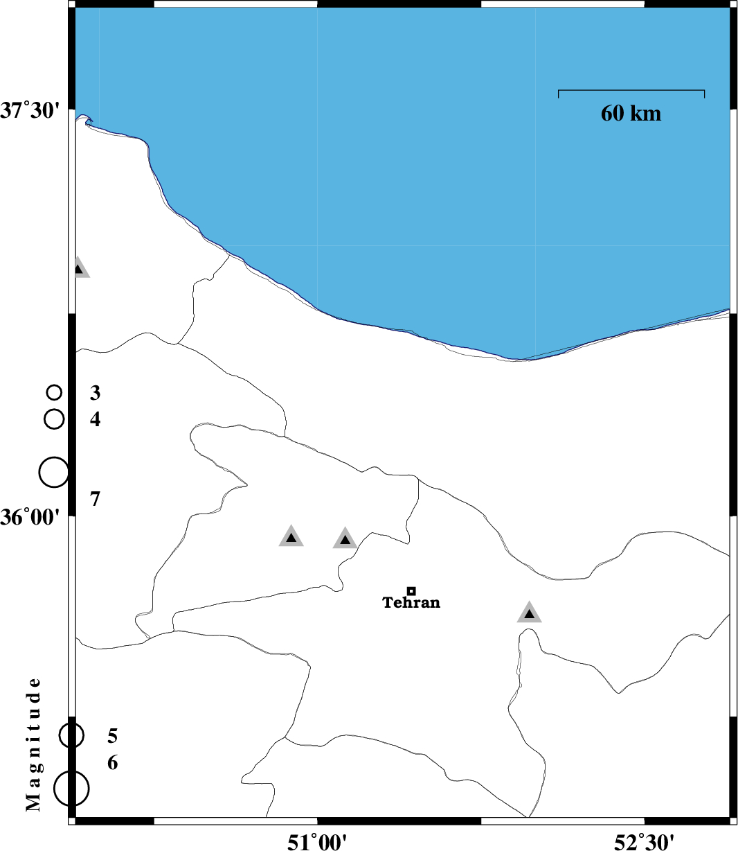 | 2006/12/25 | 20:06:54.5 | 23:36:54.5 | 36.12 | 51.31 | 14 | ML2.7 | 37 km North-West of Tajrish, Tehran Province | ||