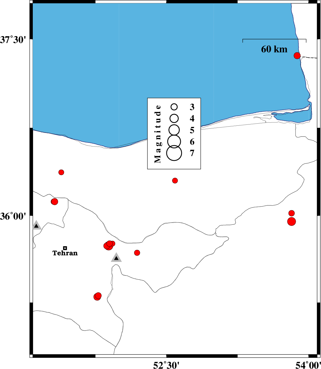 | 2006/12/25 | 20:06:54.5 | 23:36:54.5 | 36.12 | 51.31 | 14 | ML2.7 | 37 km North-West of Tajrish, Tehran Province | ||