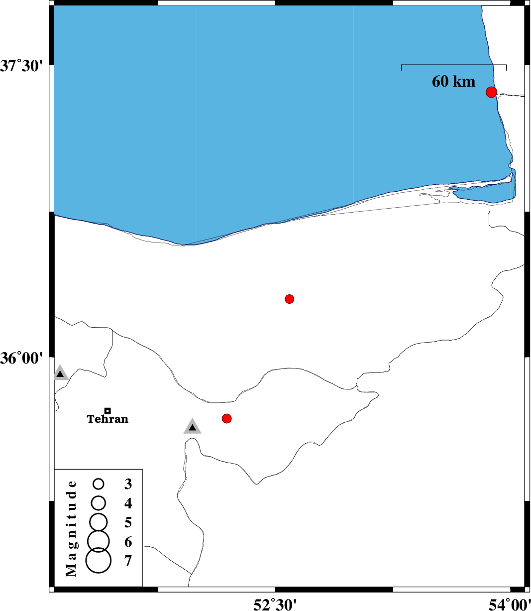 | 2007/01/10 | 23:47:07.4 | 03:17:07.4 | 37.36 | 53.88 | 41 | ML3.1 | Caspian Sea, 54 km North-West of Bandar-e torkaman |