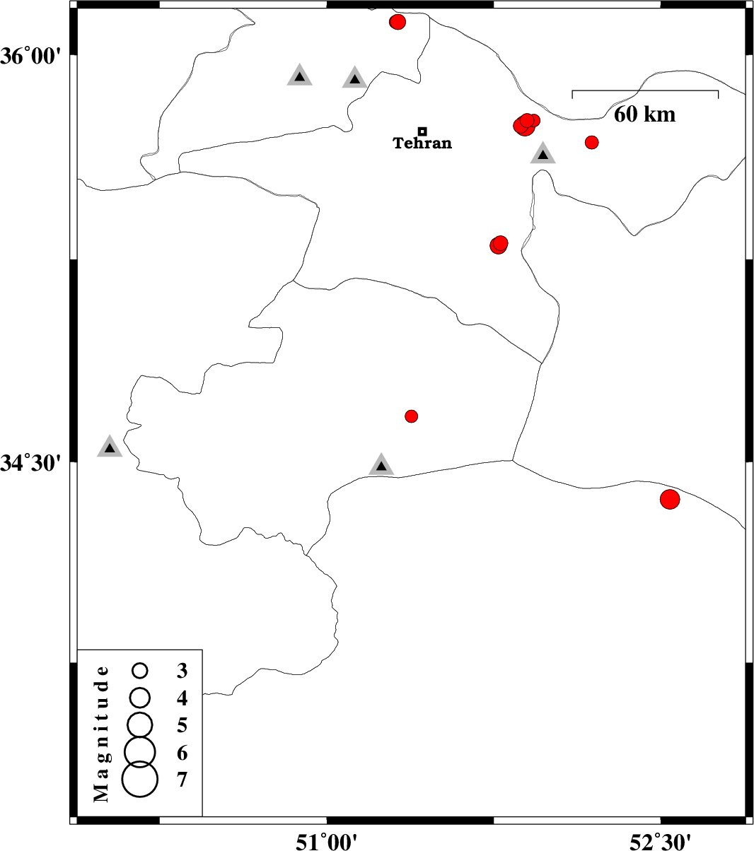 | 2006/12/19 | 13:05:56.1 | 16:35:56.1 | 34.36 | 52.54 | 14 | ML4 | 97 km South-East of Garmsar, Semnan Province |