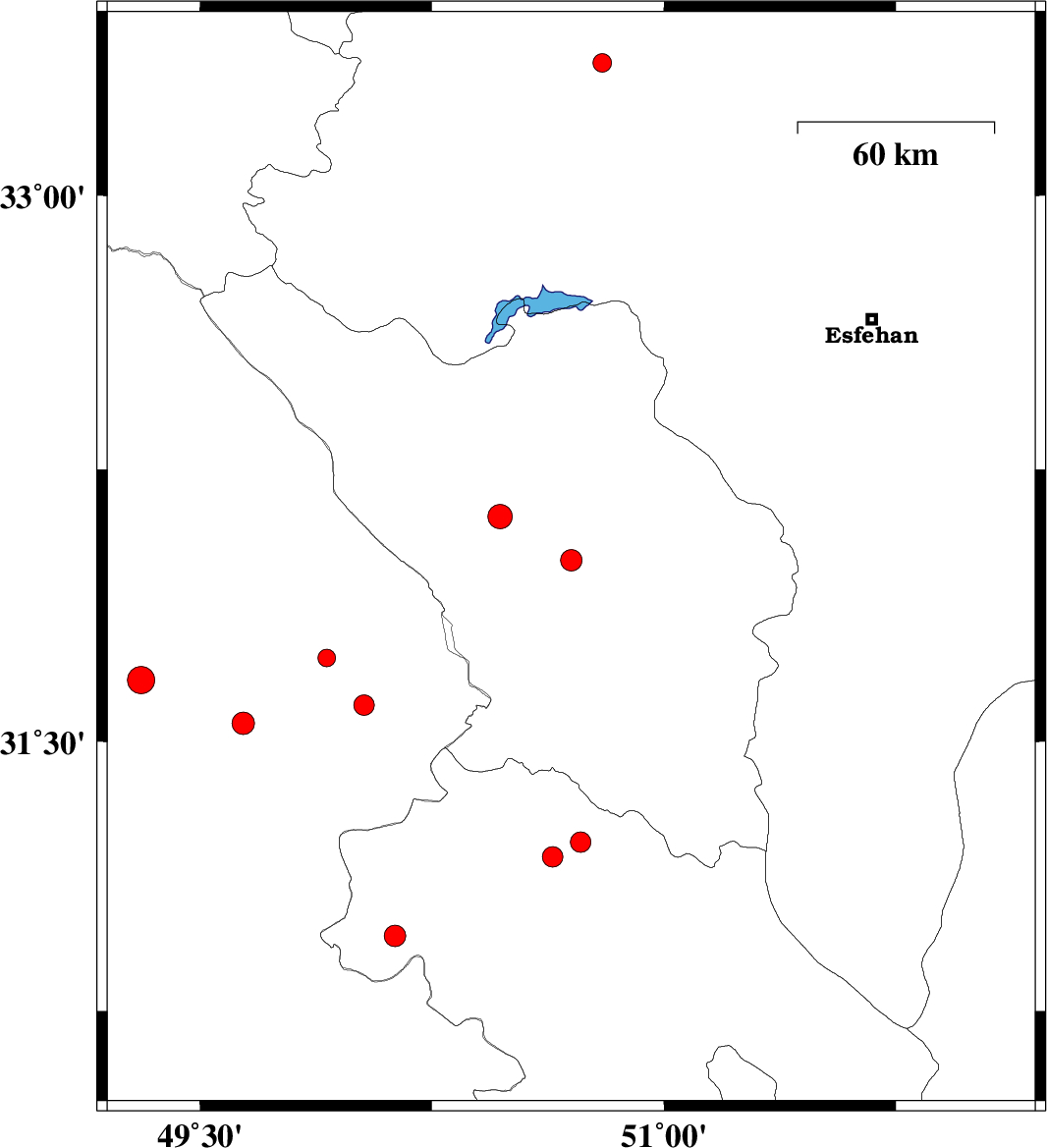 | 2007/03/26 | 06:55:34.4 | 10:25:34.4 | 32 | 50.7 | 14 | ML3.1 | 4 km Ardel, Chaharmahal Bakhtiari Province | ||