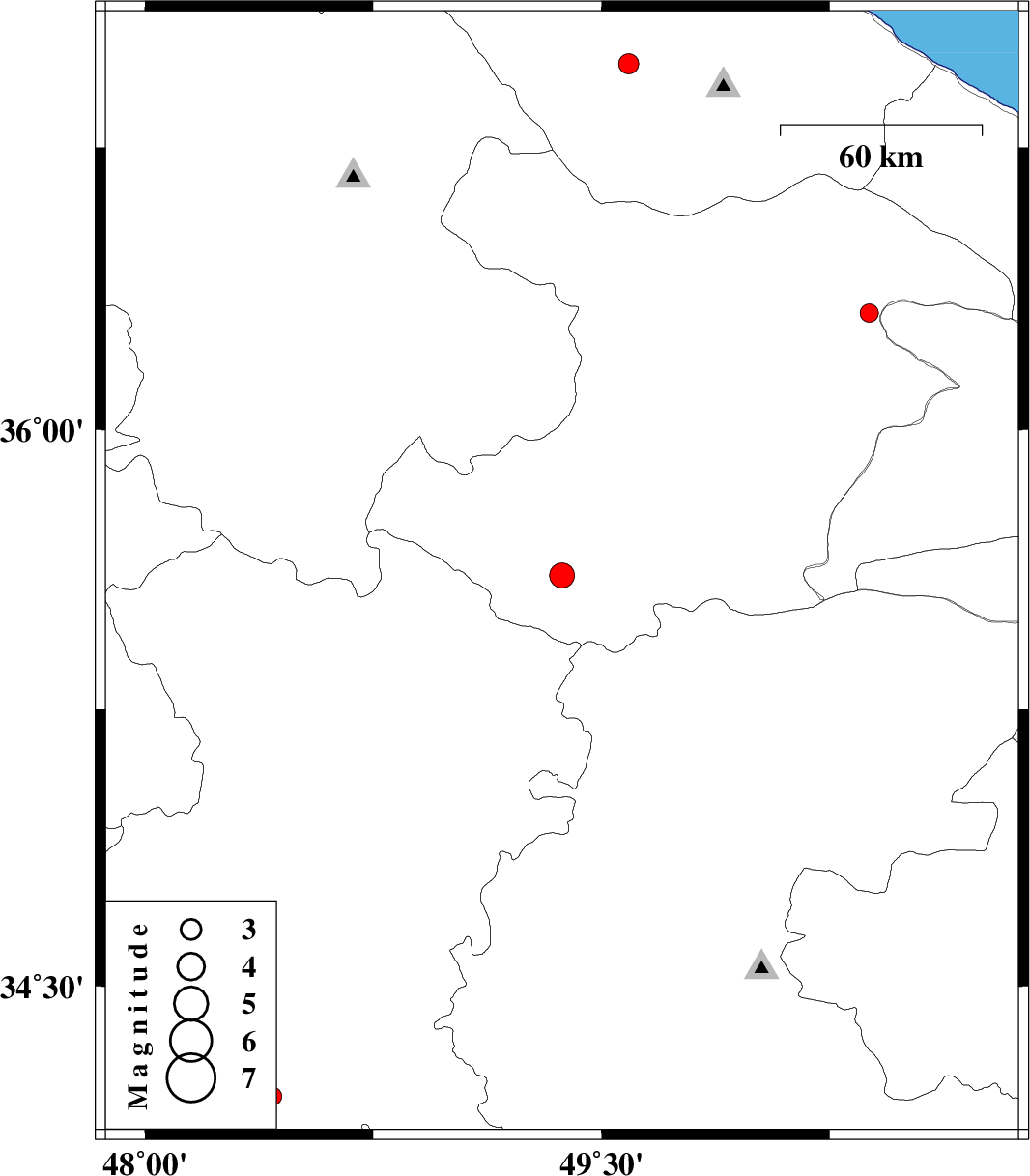 | 2007/03/28 | 15:05:52.8 | 18:35:52.8 | 35.61 | 49.37 | 42 | ML3.7 | 39 km North-East of Razan, Hamedan Province | ||