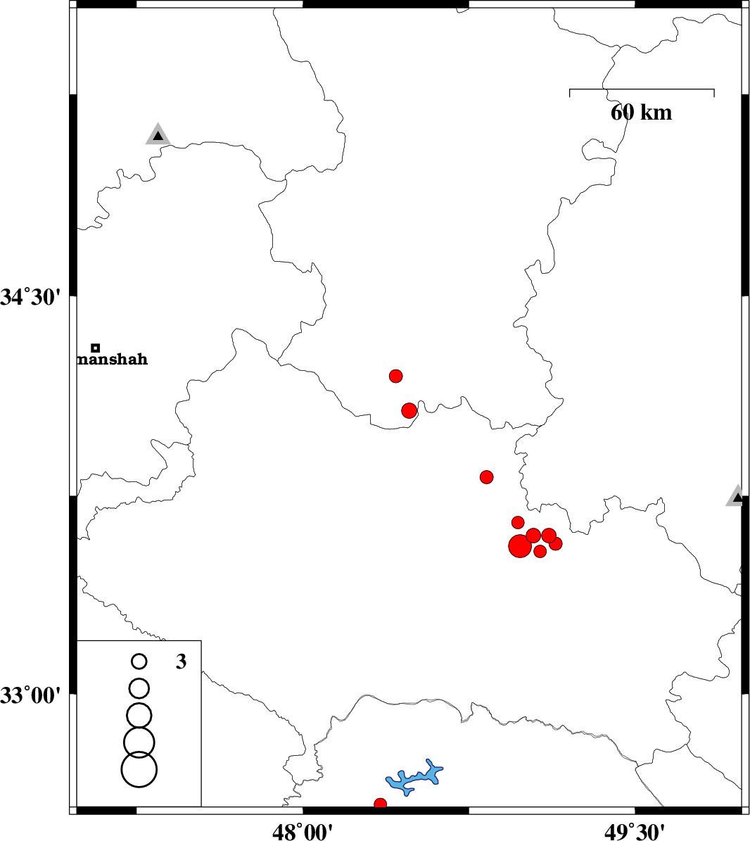 | 2007/03/06 | 15:56:28.8 | 19:26:28.8 | 33.57 | 49.14 | 38 | ML2.7 | 11 km Dorud, Lorestan Province |