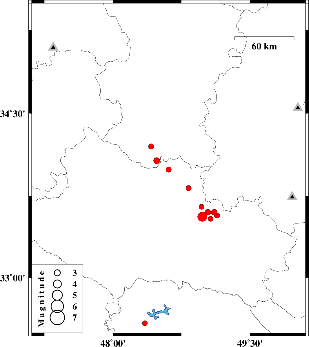 | 2007/03/06 | 15:56:28.8 | 19:26:28.8 | 33.57 | 49.14 | 38 | ML2.7 | 11 km Dorud, Lorestan Province |