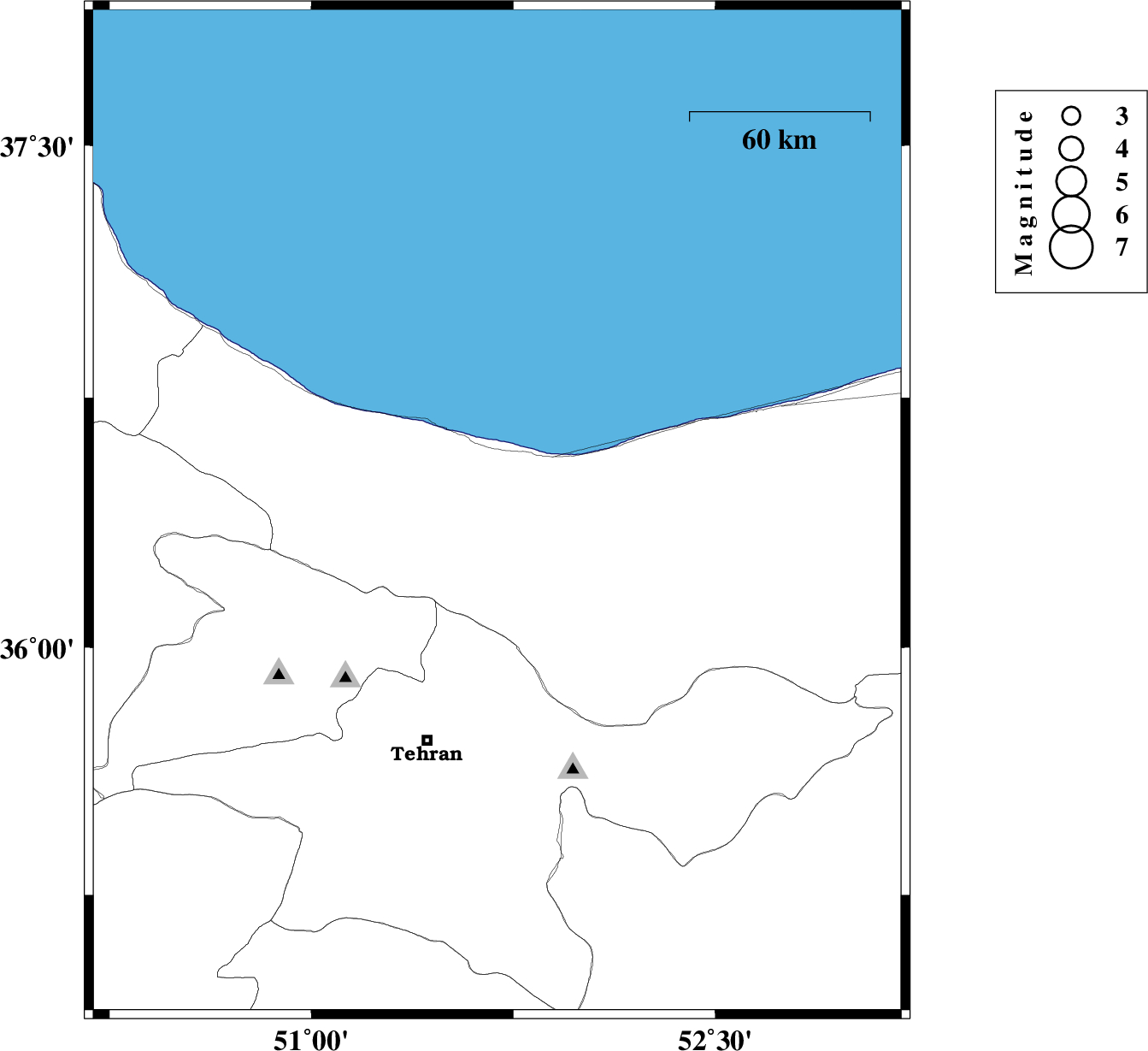 | 2007/04/29 | 05:36:09.7 | 09:06:09.7 | 35.74 | 52.37 | 6 | ML2.6 | 27 km East of Damavand, Tehran Province | ||