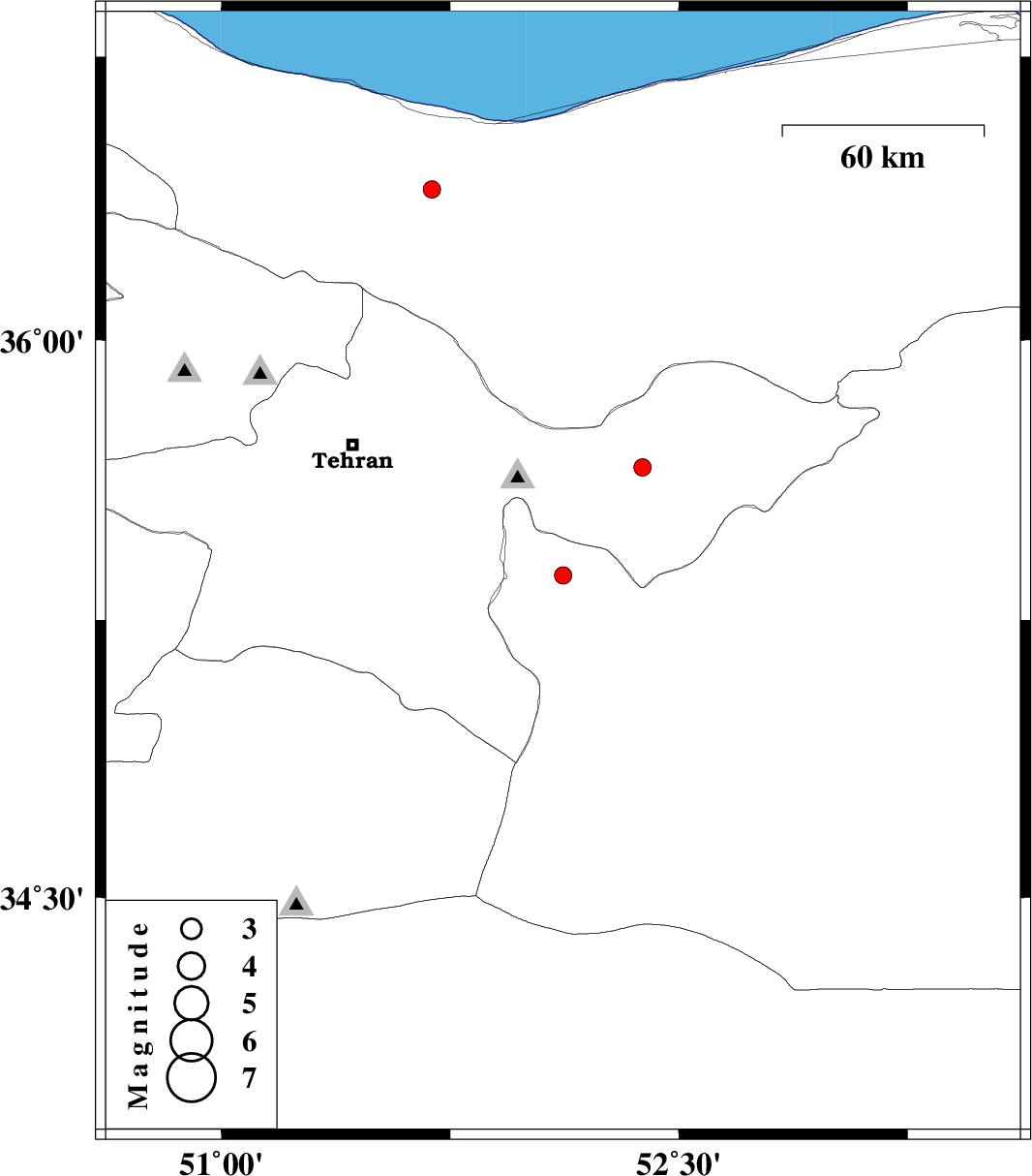 | 2007/05/06 | 15:55:36.6 | 19:25:36.6 | 35.66 | 52.38 | 8 | ML2.6 | 28 km East of Damavand, Tehran Province | ||