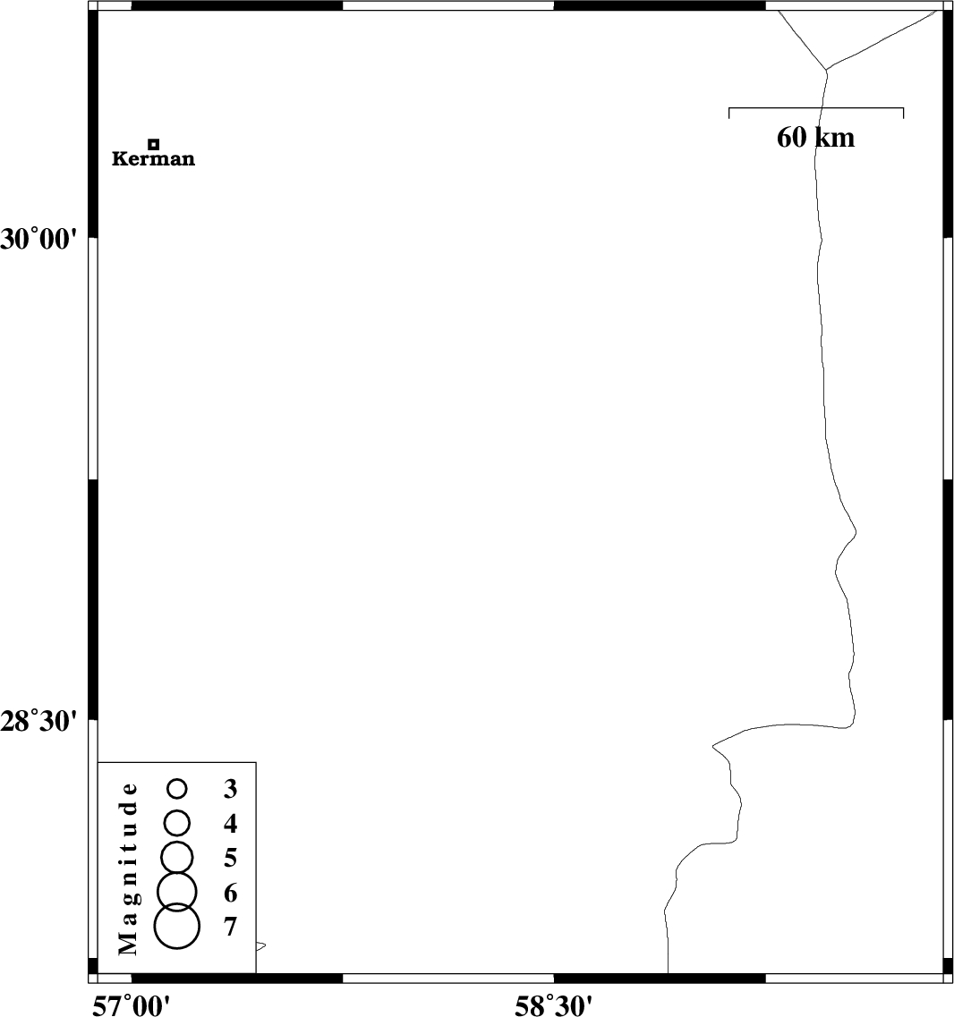 | 2007/05/09 | 10:46:36.7 | 14:16:36.7 | 29.2 | 58.38 | 14 | ML3.6 | 9 km Bam, Kerman Province |