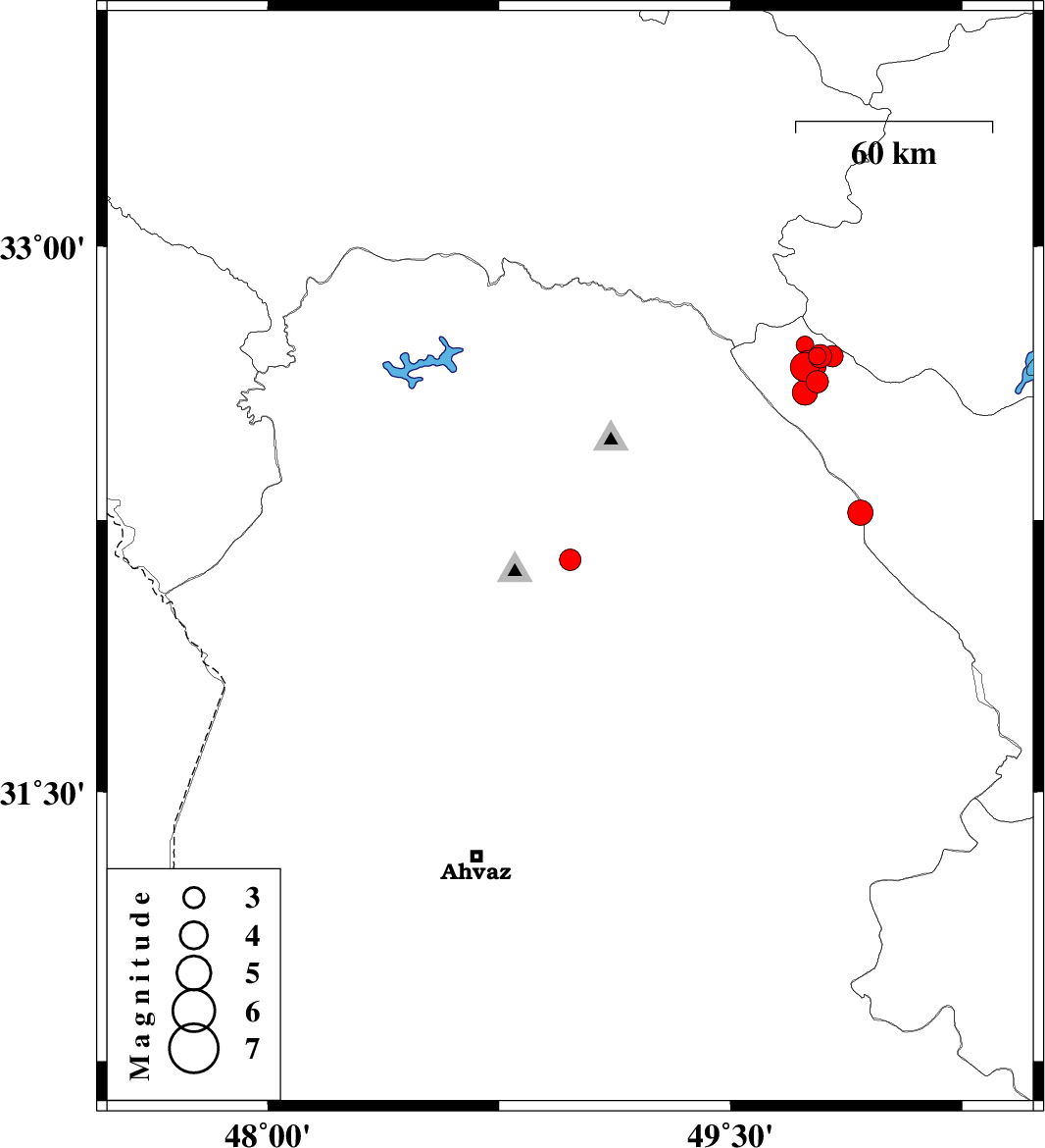 | 2007/06/03 | 06:45:53.4 | 10:15:53.4 | 32.6 | 49.74 | 14 | ML3.6 | 38 km North-West of Chelgard, Chaharmahal Bakhtiari Province |