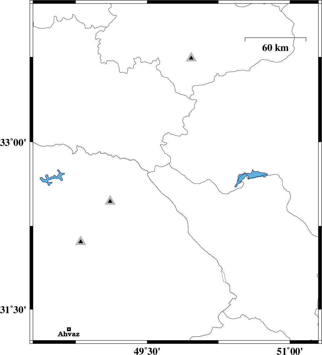 | 2007/06/11 | 19:26:57.9 | 22:56:57.9 | 31.59 | 50.31 | 16 | ML3.1 | 39 km East of Bagh Malek, Khoozestan Province | ||