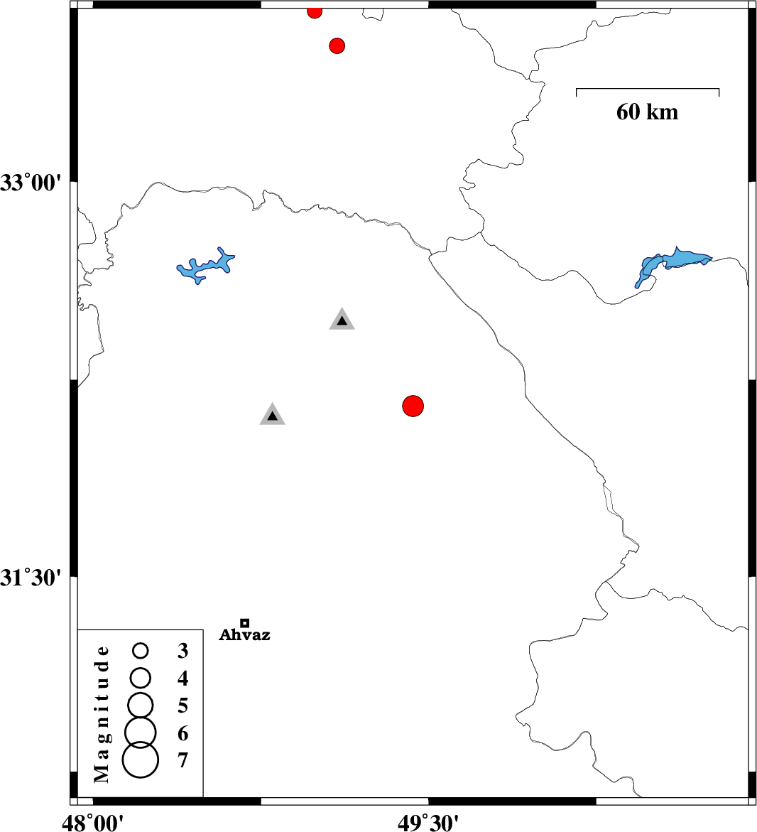 | 2007/04/15 | 03:56:09.6 | 07:26:09.6 | 32.15 | 49.43 | 31 | ML4.3 | 26 km North-East of Masjed Soleyman, Khoozestan Province | ||
