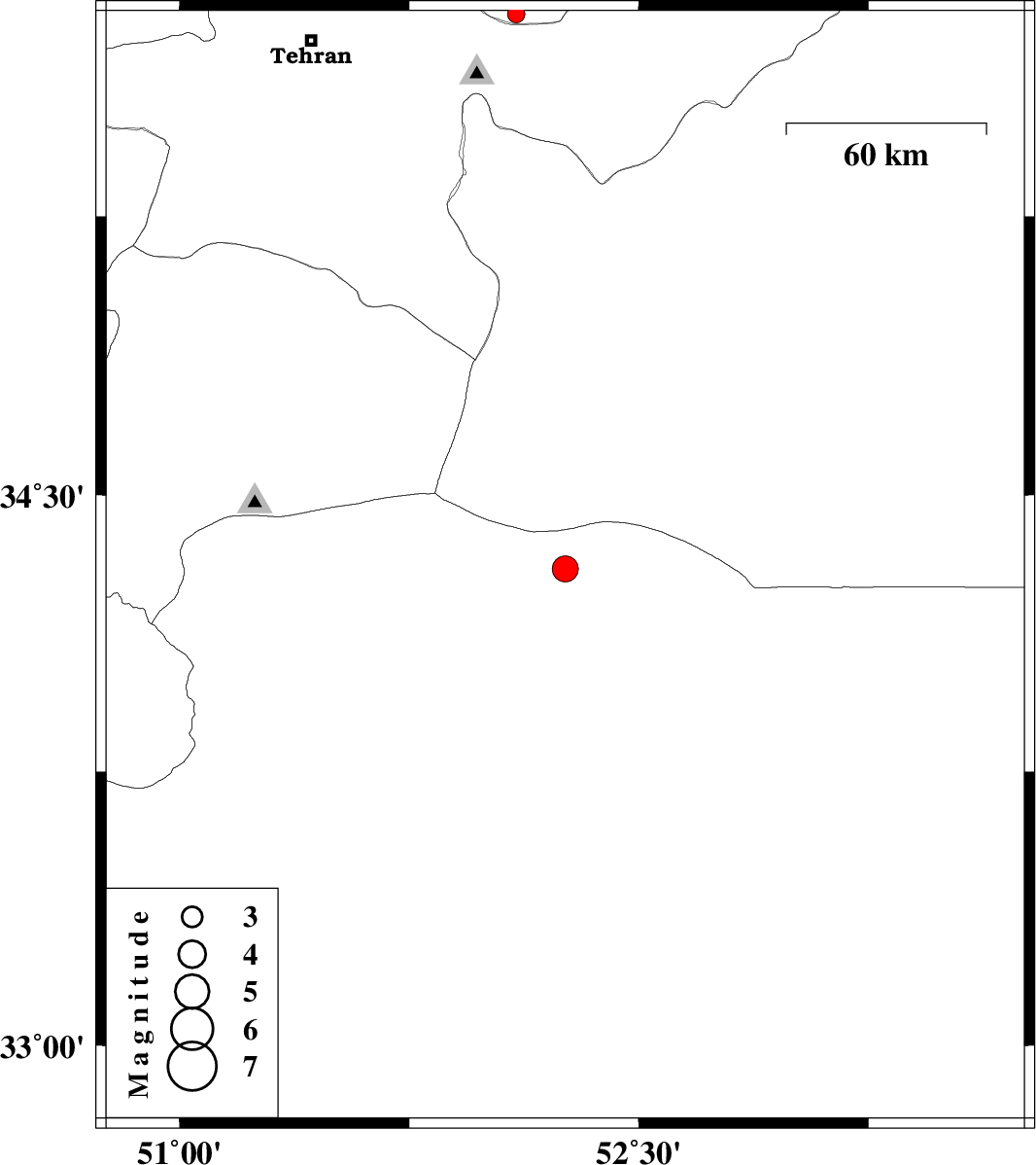 | 2007/05/30 | 09:44:10.4 | 13:14:10.4 | 35.79 | 52.1 | 12 | ML2.6 | 8 km Damavand, Tehran Province |