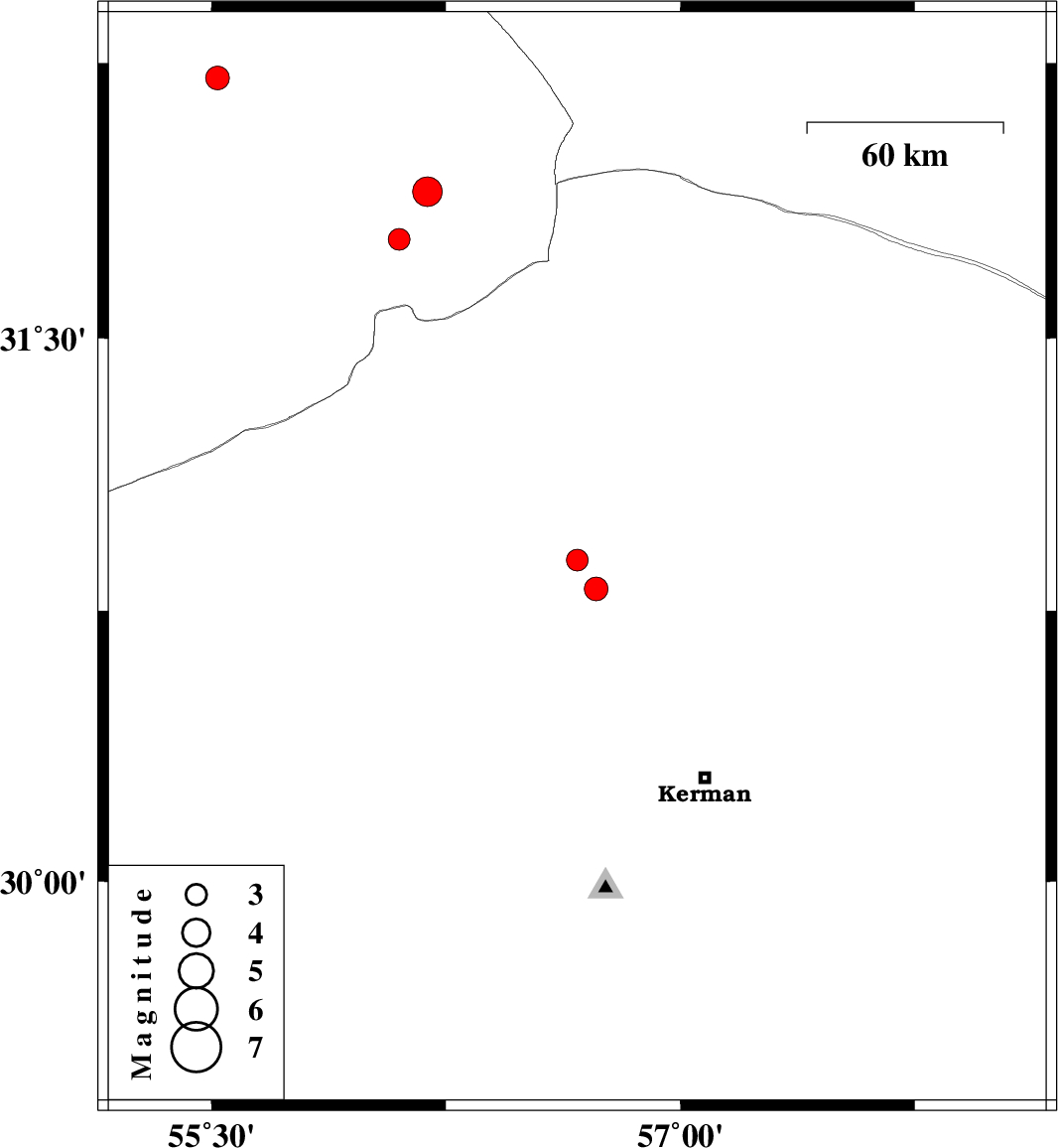 | 2007/04/26 | 03:45:20.4 | 07:15:20.4 | 30.81 | 56.73 | 7 | ML3.4 | 15 km East of Zarand, Kerman Province |