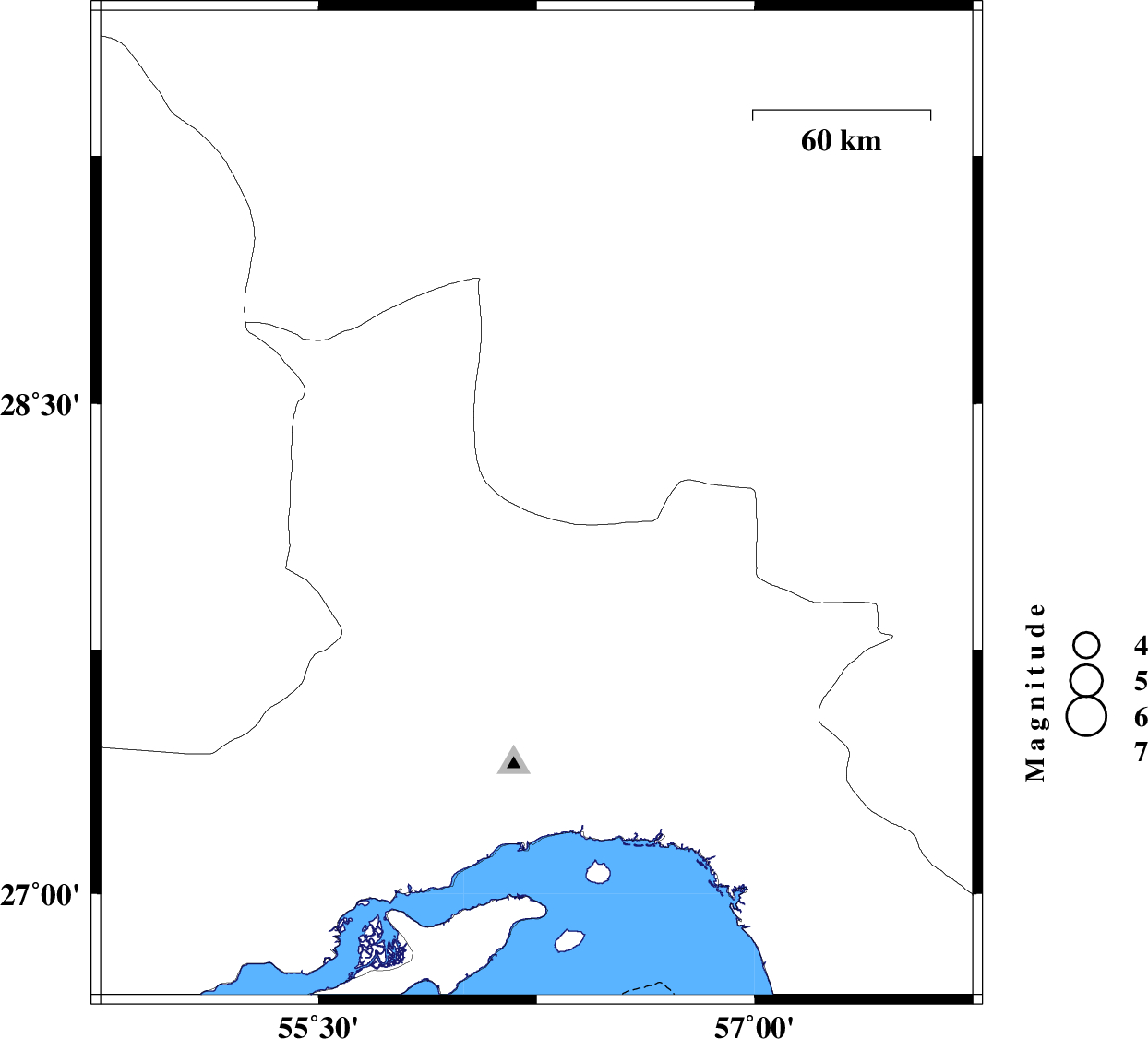 | 2007/04/26 | 04:59:34.1 | 08:29:34.1 | 28.23 | 56.23 | 15 | ML4 | 33 km East of Hajiabad, Hormozgan Province | ||