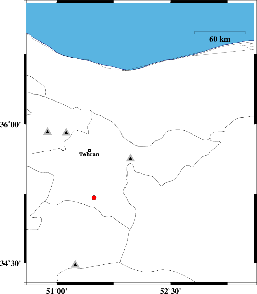| 2007/05/30 | 09:44:10.4 | 13:14:10.4 | 35.79 | 52.1 | 12 | ML2.6 | 8 km Damavand, Tehran Province | ||