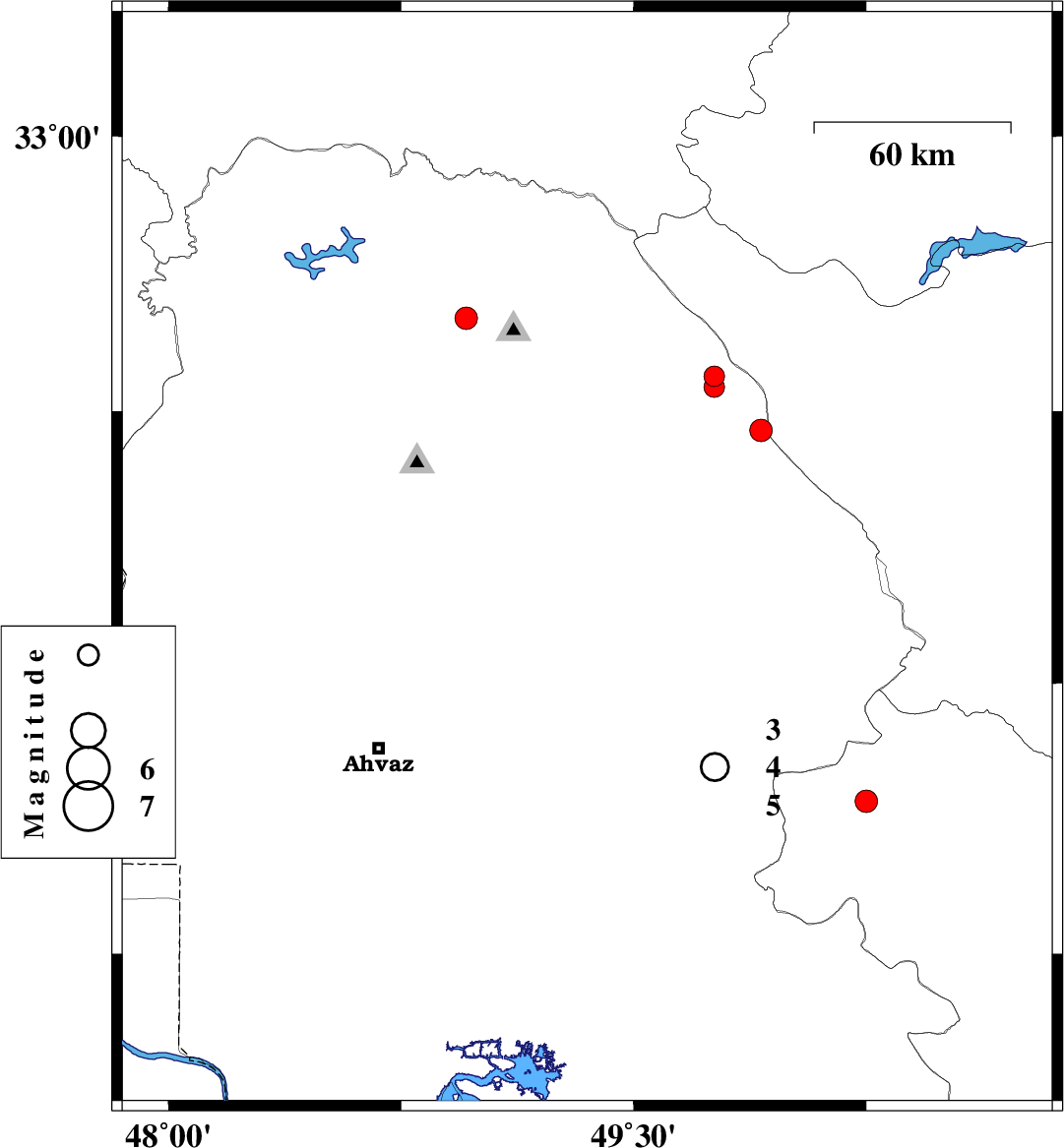 | 2007/07/26 | 22:55:29.8 | 02:25:29.8 | 31.53 | 50.3 | 14 | ML3.3 | 37 km East of Bagh Malek, Khoozestan Province | ||