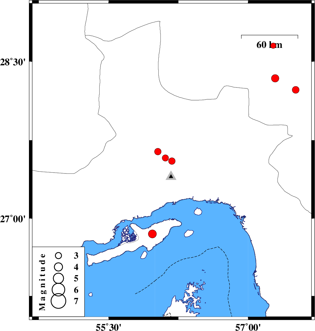 | 2007/06/27 | 19:08:16.9 | 22:38:16.9 | 26.85 | 55.97 | 17 | ML3.9 | Persian Gulf, 31 km South-West of Qeshm | ||
