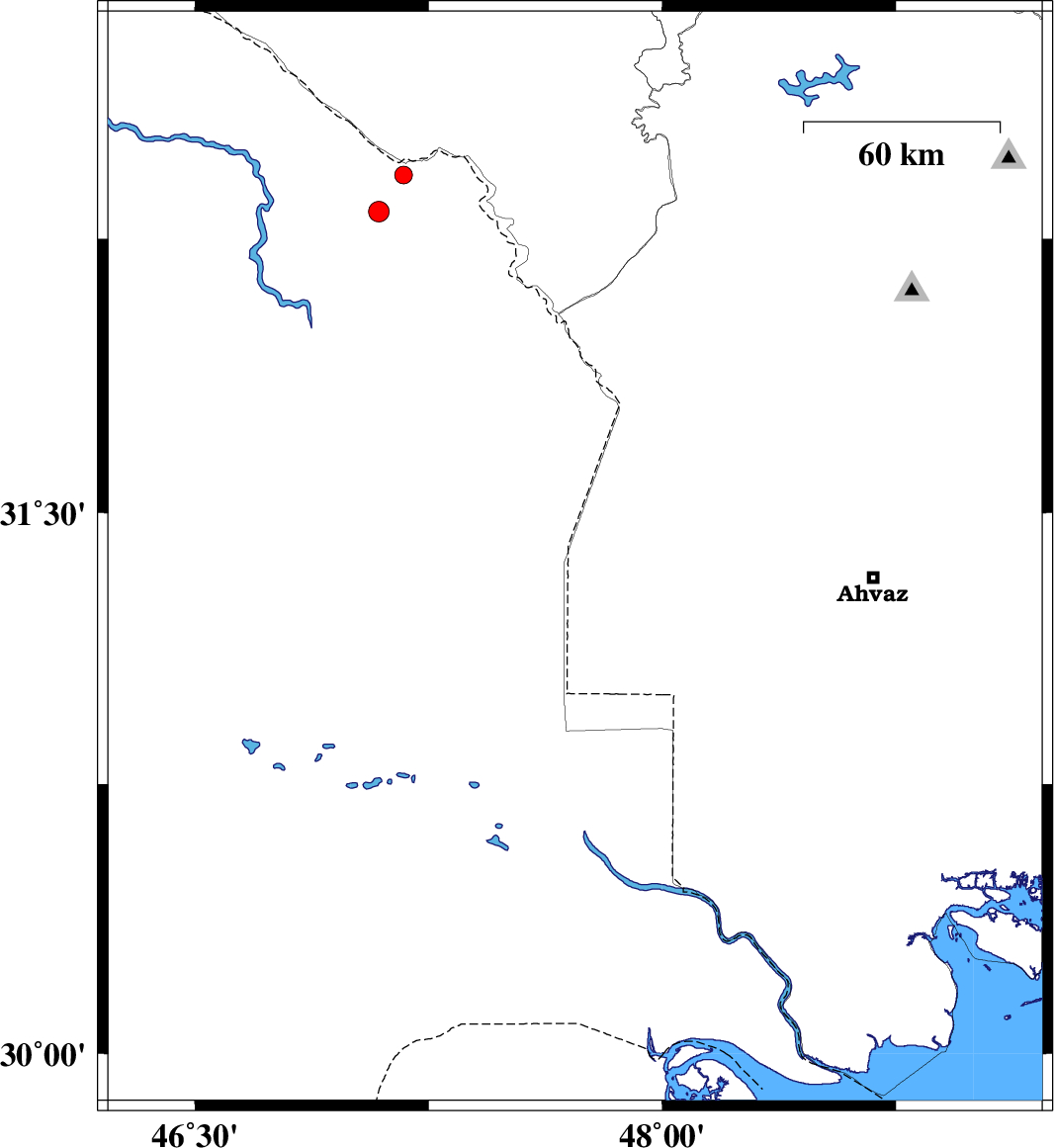 | 2007/08/31 | 02:32:34.6 | 06:02:34.6 | 31.34 | 47.7 | 14 | ML3.1 | 51 km South-West of Susangerd, Khoozestan Province | ||