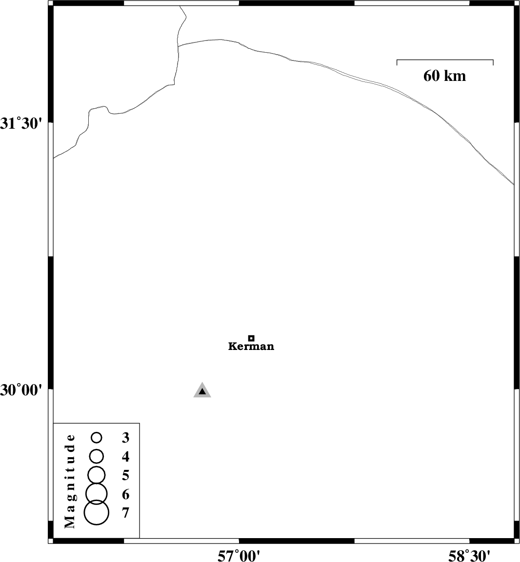 | 2007/09/05 | 23:41:29.7 | 03:11:29.7 | 30.65 | 57.29 | 14 | ML2.8 | 45 km North-East of Kerman, Kerman Province |