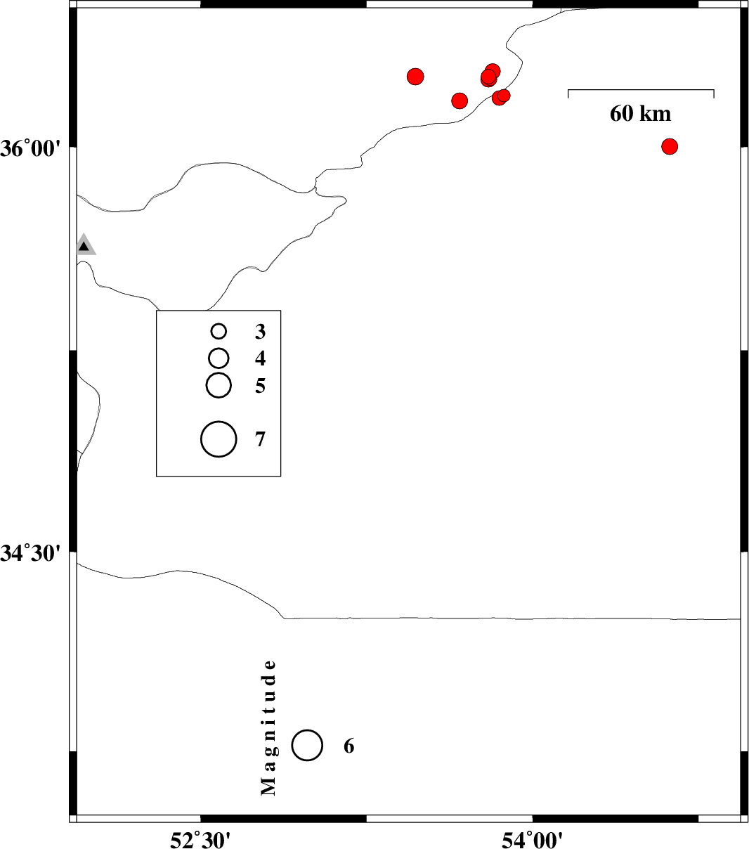 | 2007/09/05 | 17:52:35.7 | 21:22:35.7 | 34.94 | 53.51 | 14 | ML2.6 | 70 km South-East of Semnan, Semnan Province | ||