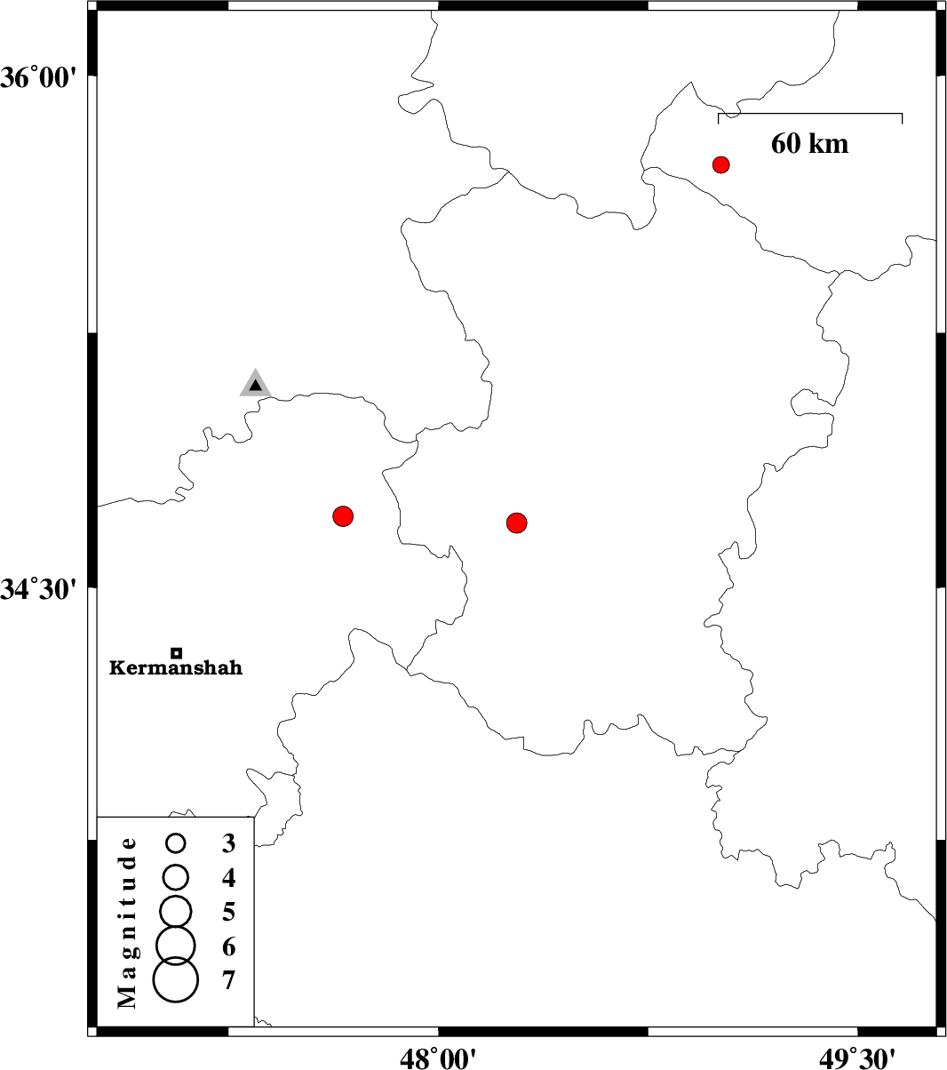 | 2007/09/09 | 06:38:56.9 | 10:08:56.9 | 34.71 | 47.66 | 14 | ML3.3 | 10 km Sonqor, Kermanshah Province | ||