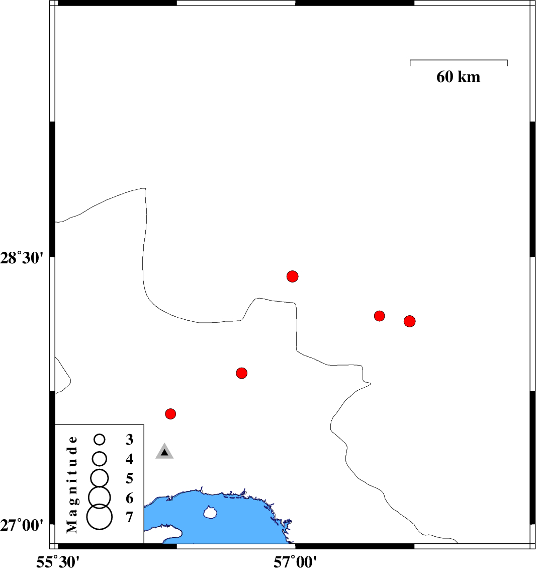 | 2007/08/13 | 16:11:13.2 | 19:41:13.2 | 27.85 | 56.66 | 14 | ML3.1 | 73 km North-West of Dehbarez, Hormozgan Province |